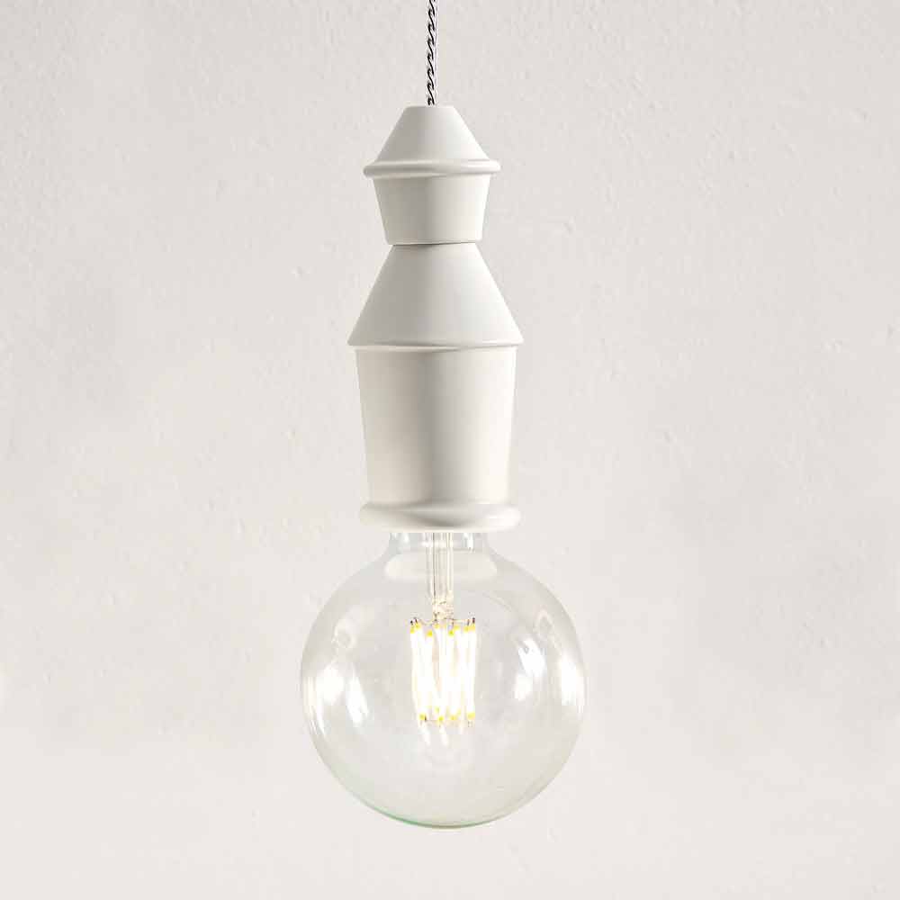 Begge efterbehandlinger fås i blank eller mat version. Det elektrificerede kabel er lavet af stål og er dækket af en gennemsigtig silikonkappe. Lampen leveres uden en pære, men er velegnet til dekorative pærer på markedet.