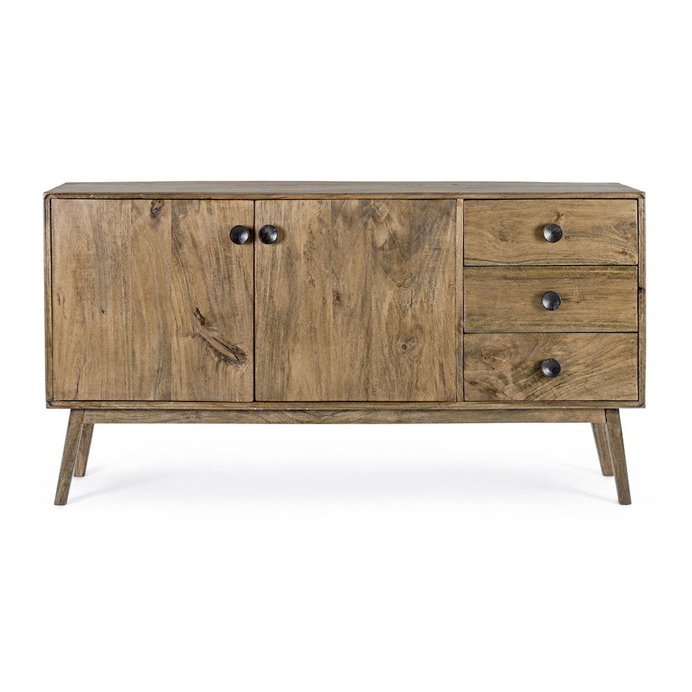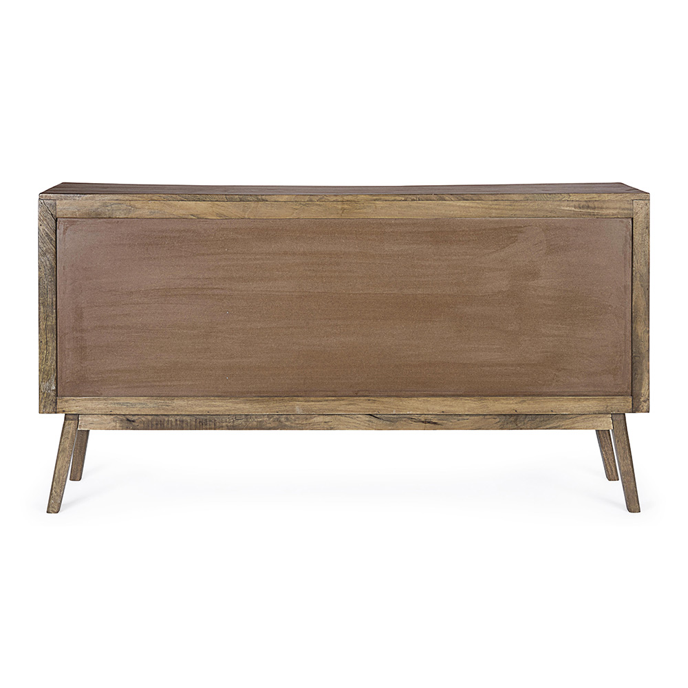 Denne design skænk til stuen har en struktur og ben, der skal samles i mangotræ med en vandbaseret finish og bagside i MDF.