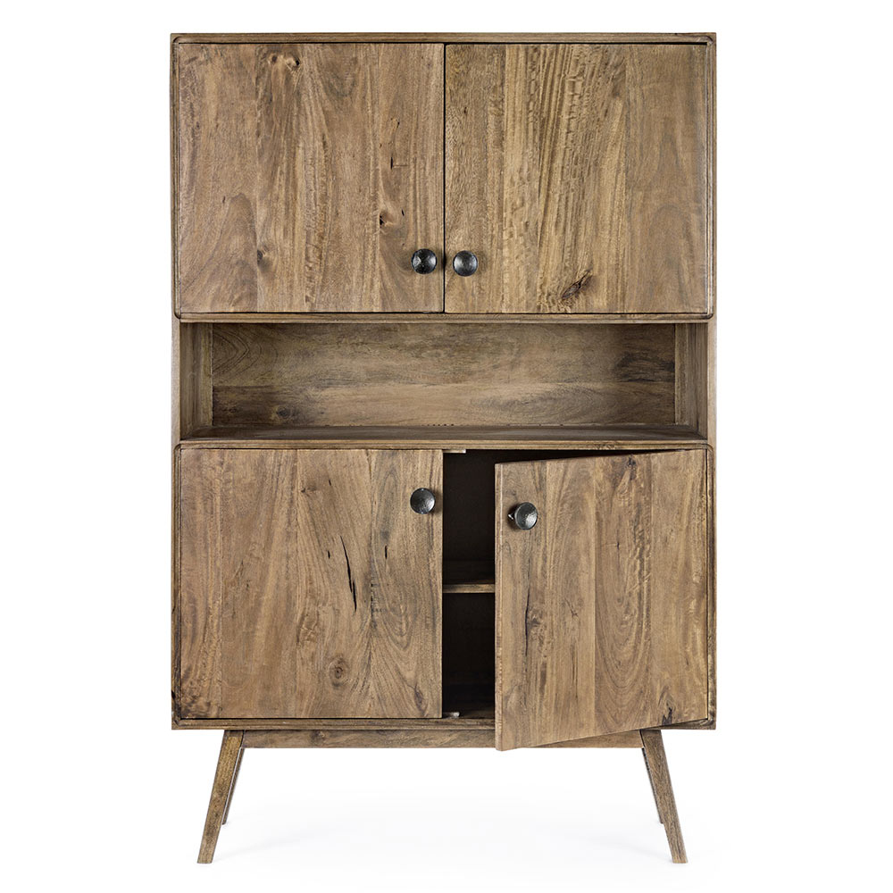 Denne design skænk til stuen har en struktur og ben, der skal samles i mangotræ med en vandbaseret finish og bagside i MDF.