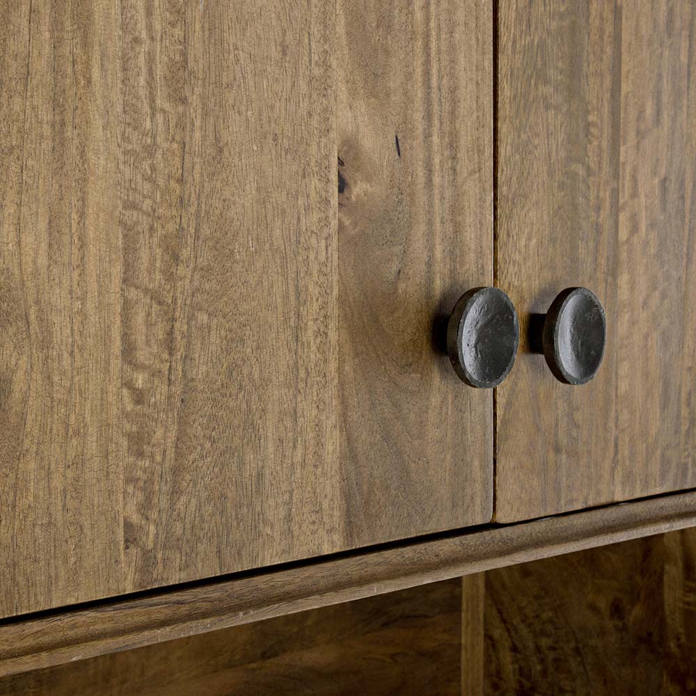 Skænk i mangotræ med 4 låger og hylde i vintage-etnisk stil.