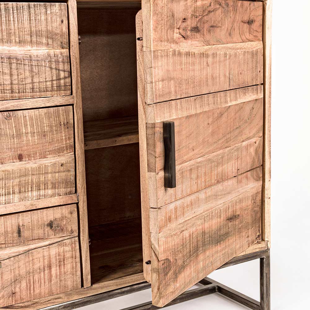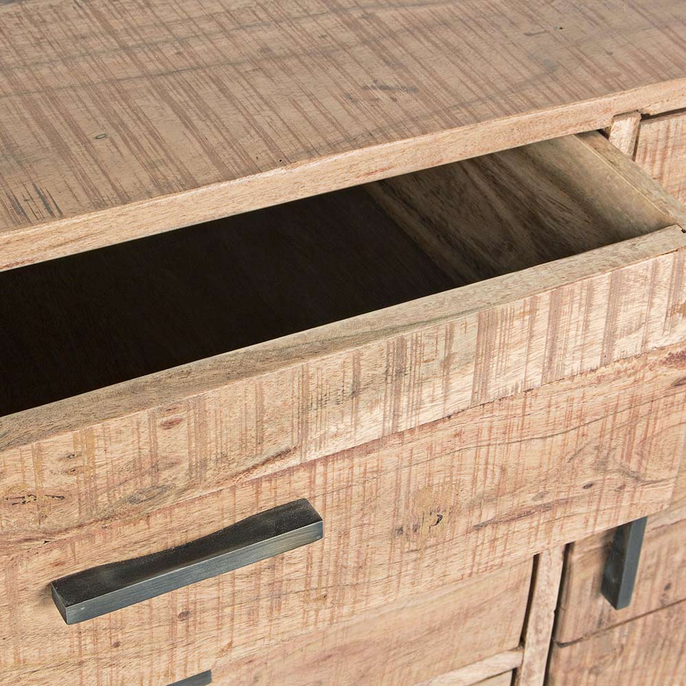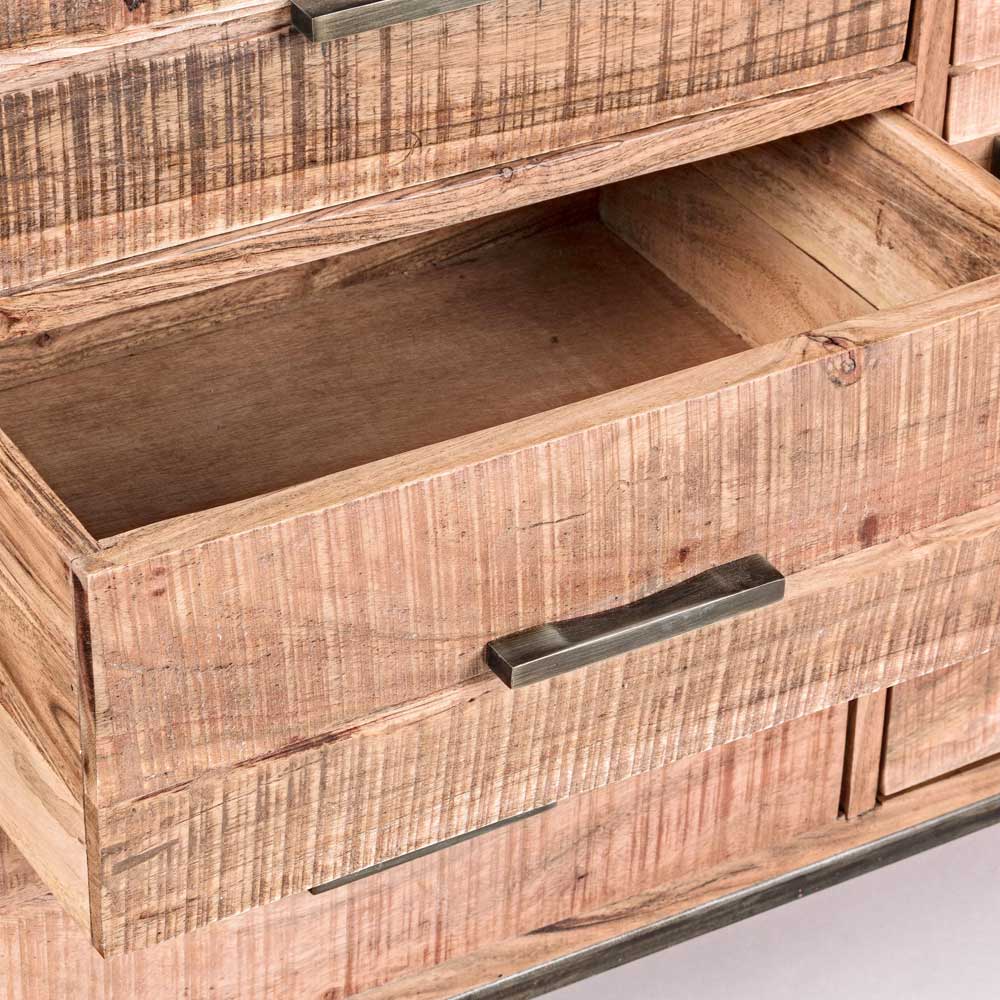 Skænk i akacietræ med 2 låger og 3 skuffer i 2 størrelser.