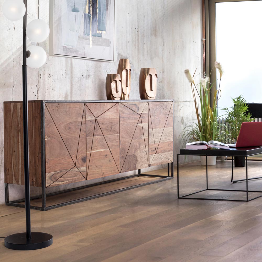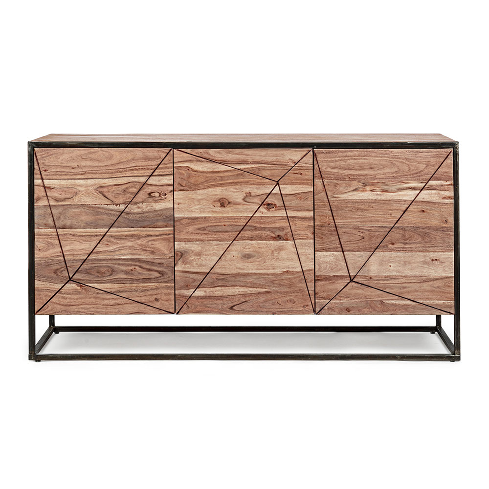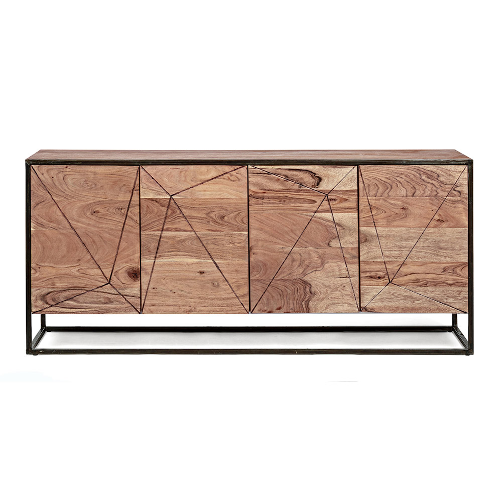 Skænk i akacietræ og stål i etnisk stil, 2 størrelser.