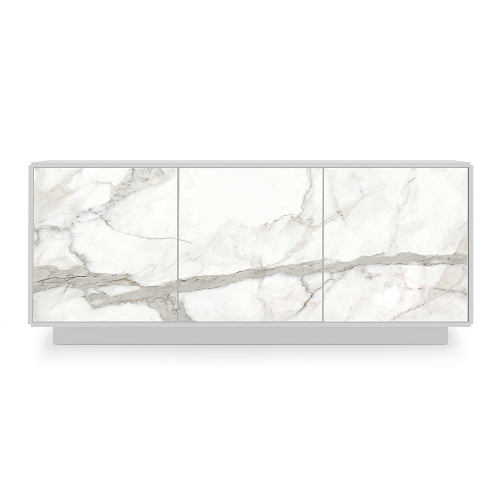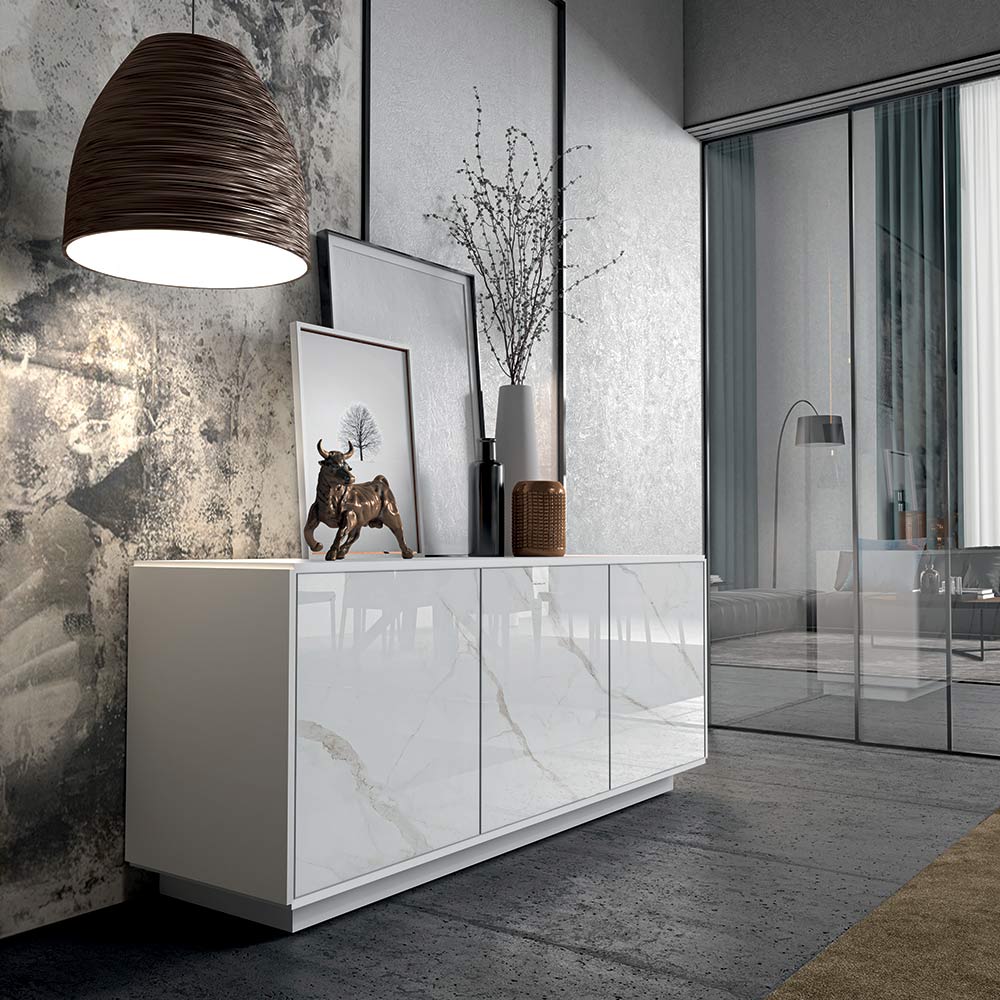 Stue skænk i lakeret træ med keramiske låger, høj kvalitet Made in Italy.