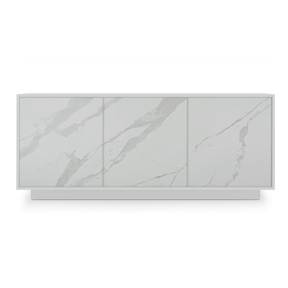 - døre med mat Statuario finish og mat hvidlakeret struktur.