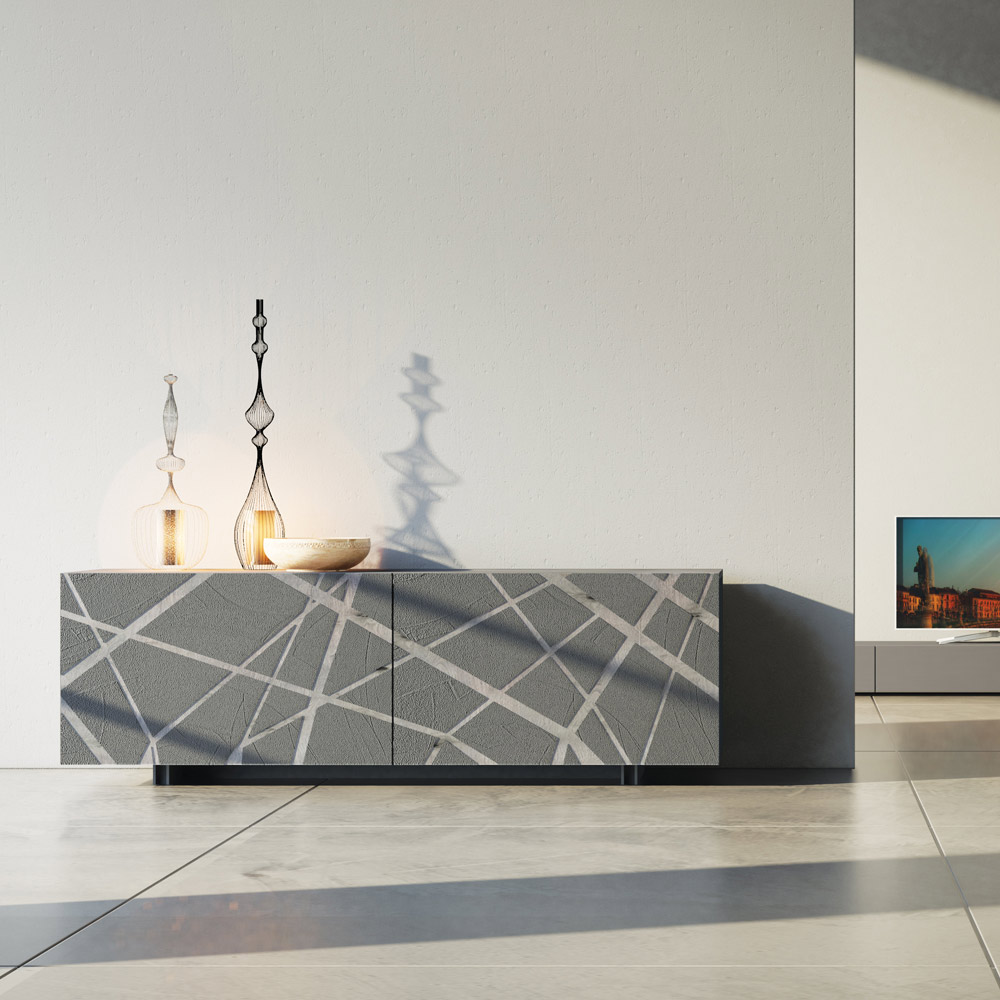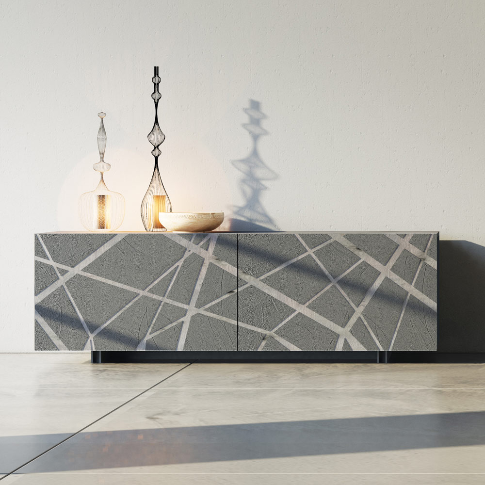 Stue skænk med MDF struktur i lermelamin indvendigt og ask mat lakeret udvendigt. Åbningssystemet har 2 skydedøre i samme plan og er amortiseret i åbning og lukning for at garantere perfekt funktionalitet og funktionalitet . De indvendige hylder er aftagelige og i 8 mm tykt glas og inkluderer desuden en sokkel . Dette produkt er fuld af smag og design takket være foreningen af forskellige materialer, dets elegante og raffinerede finish og udsmykket af dekorationen på døren med et mudderfarvet bas-relief . Alle materialer, der er brugt til konstruktionen, giver høj kvalitet og modstand over tid, hvilket giver produktet det unikke og uforglemmelige touch.