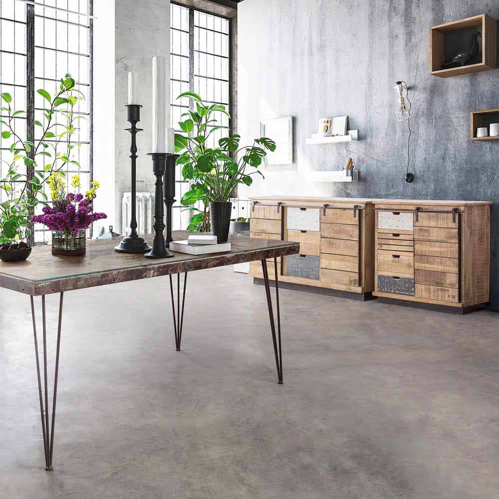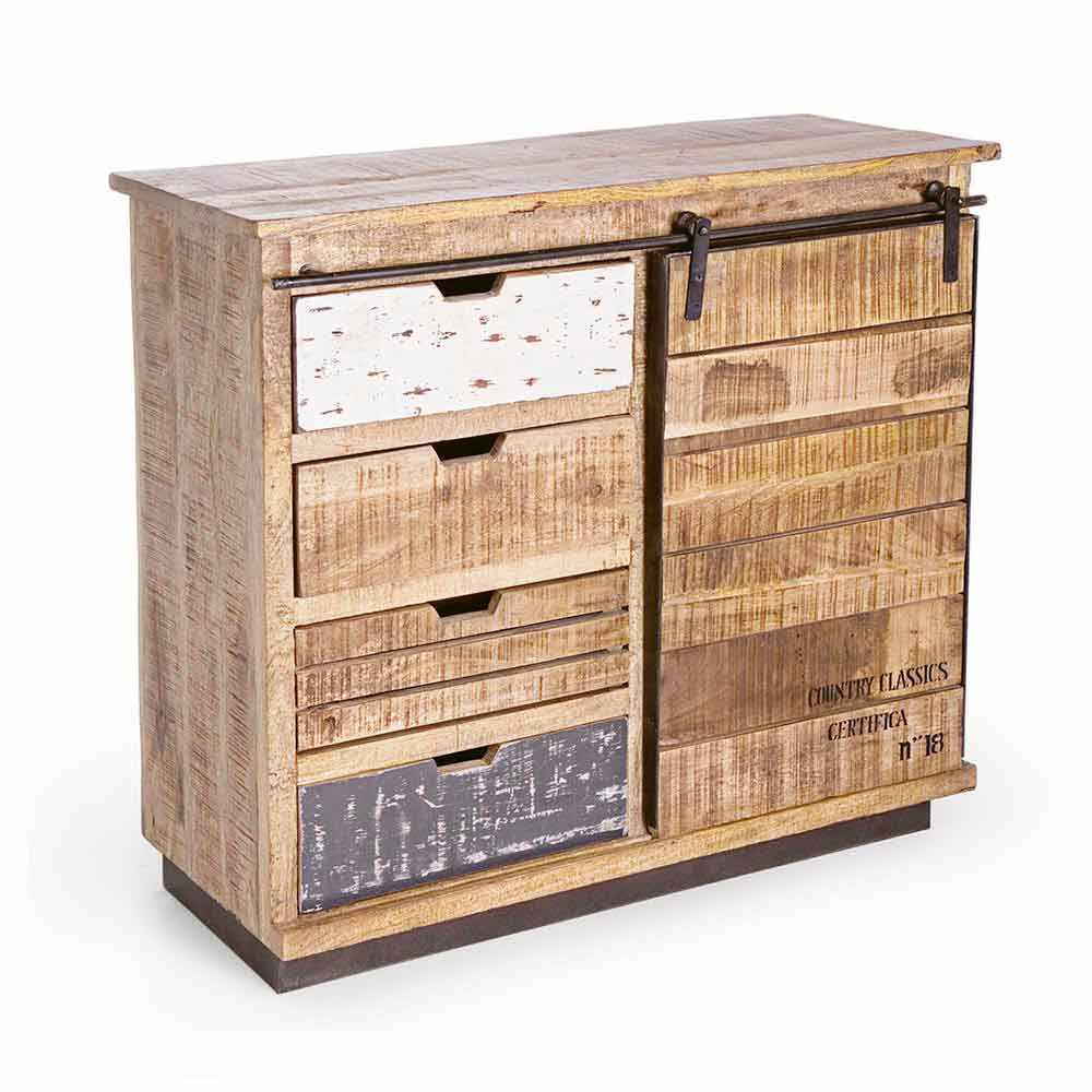 Skænk i træ og stål med dør og 4 skuffer Industriel stil - Renza
