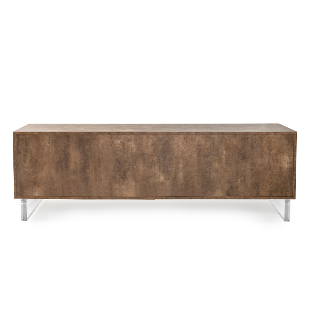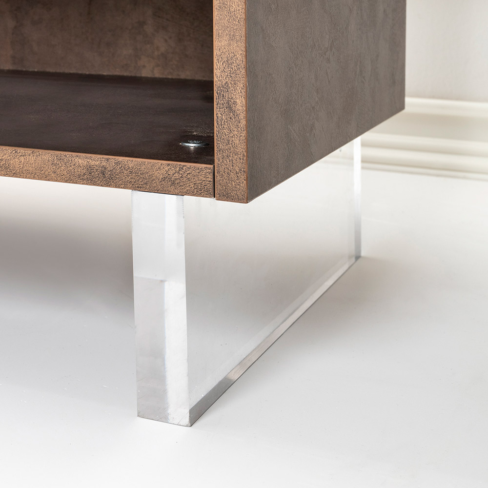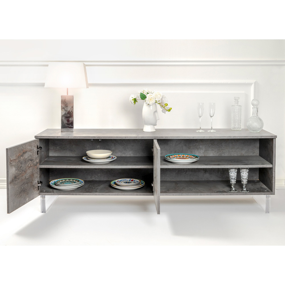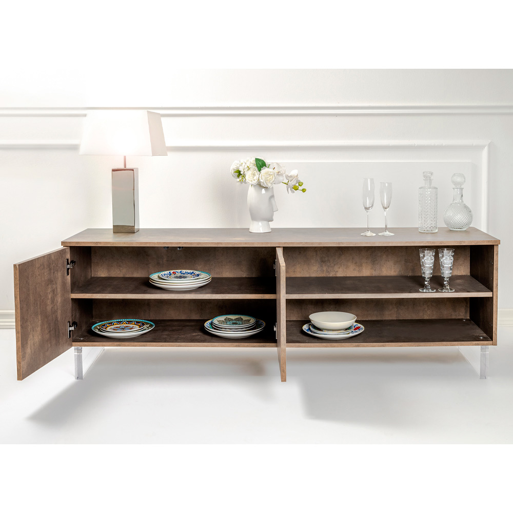 Skænken med sine plexiglasfødder ser ud til at røre jorden, en designdetalje, der tilføjer et strejf af modernitet og lethed . Indeni venter ryddelige hylder til at rumme alt, hvad du elsker, fra bøger til hverdagsting, og tilbyder en elegant løsning på behovet for organisering.