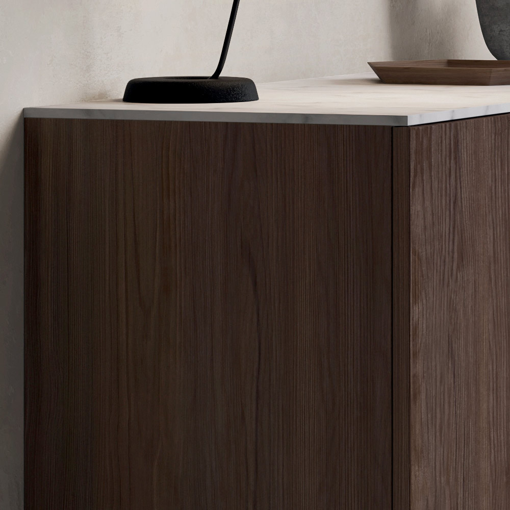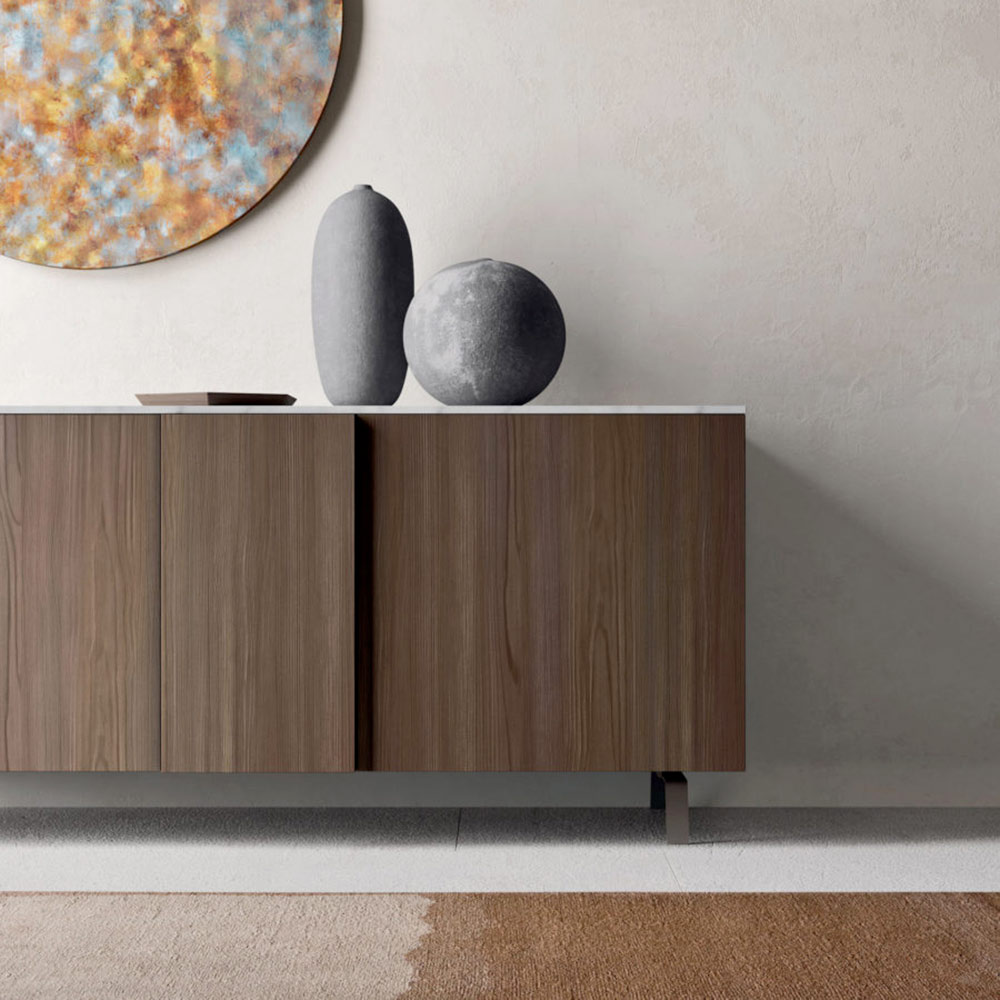 Skænk til stue med 2 døre i økologisk træ og marmorplade i høj kvalitet fremstillet i Italien.