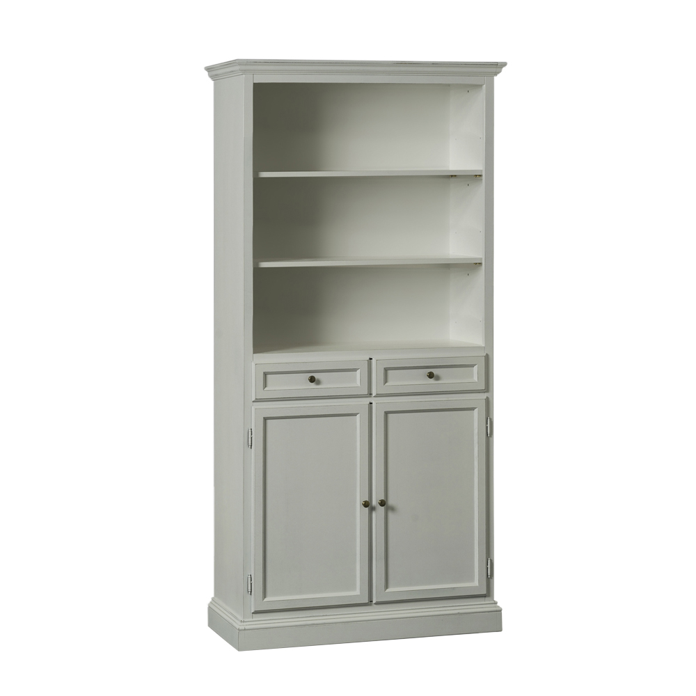 2 låger, 2 synlige hylder og 2 skuffer helt