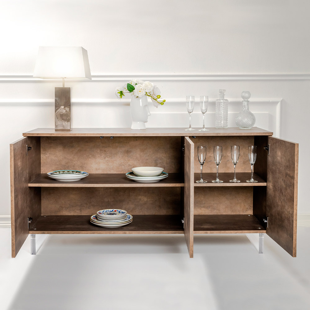 Overfladen lover at bevare sin oprindelige lysstyrke, en hjørnesten, der sikrer din investering over tid. Med funktionalitet designet til hverdagens behov tilbyder denne skænk generøs plads til bedre at organisere hvert objekt, mens designets elegance gør den til en ubestridt hovedperson i dit miljø.