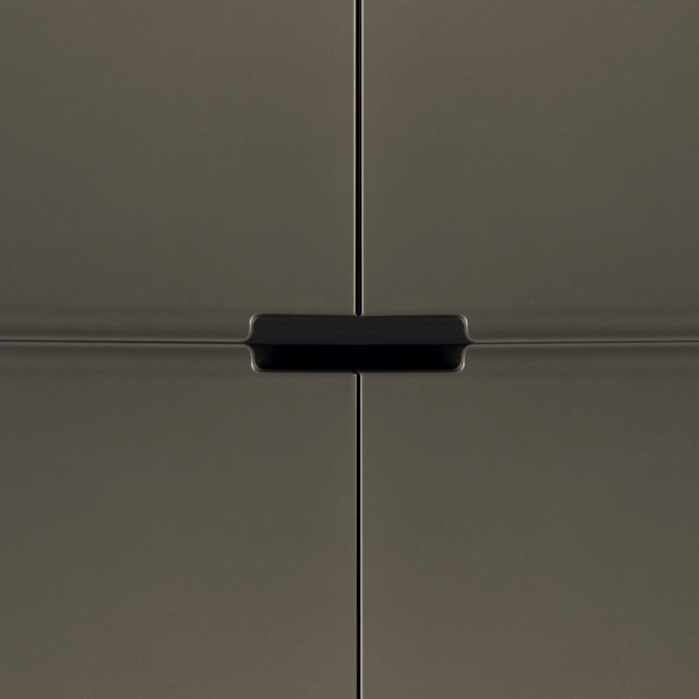Stue skænk med en moderne stil fuldstændig lavet i Italien sammensat af jernfødder med nikkel finish og trækul finish mdf skal med nikkel finish døre . Brugen af enkle, men modstandsdygtige materialer forvandler dette produceret i møbler med stor alsidighed og et attraktivt og interessant udseende.