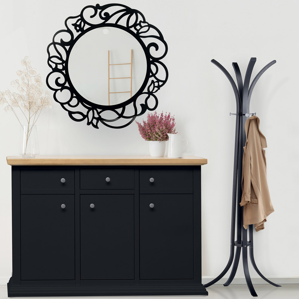 FORHOLDSREGLER: I betragtning af at træ er et levende materiale og følsomt over for fugt, skal der lægges særlig vægt på at placere møblerne inde i boliger med puds, der har været hvilet og tørt i mindst 1 måned. Vi anbefaler dog at lade være med et mellemrum på mindst 5 centimeter fra væggen i nogle måneder og lufte rummene ofte.