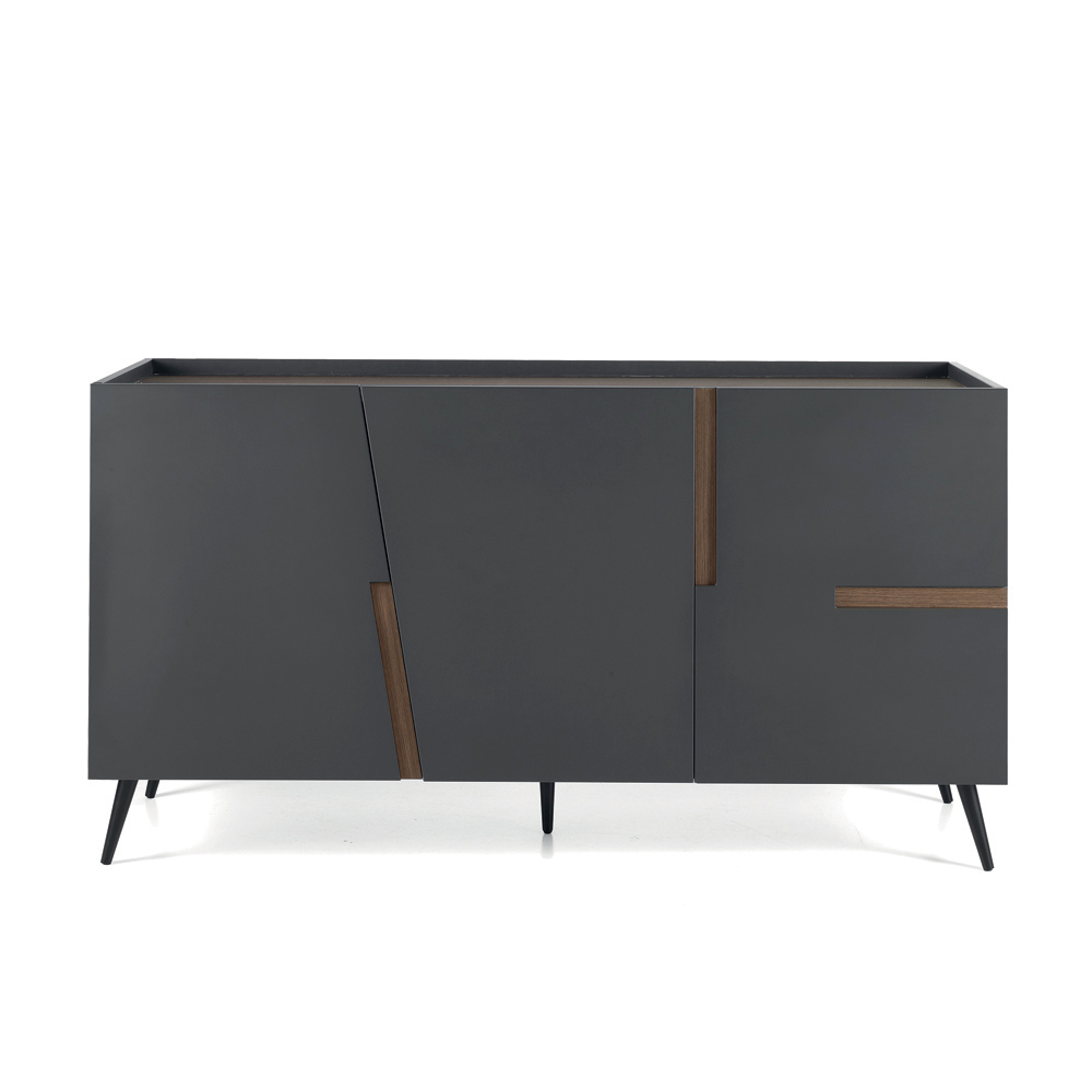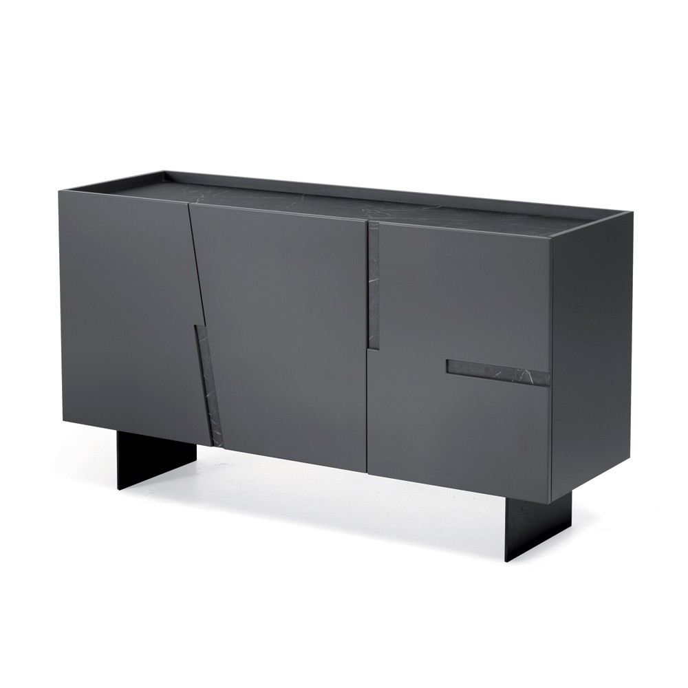 Den malede metalbase , der fås i forskellige konfigurationer, strømliner strukturen og giver den en visuel lethed og et moderne præg. Takket være dens balance mellem æstetik og funktionalitet er denne skænk en ideel løsning til at organisere rum med stil.