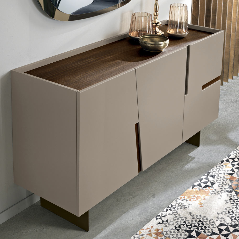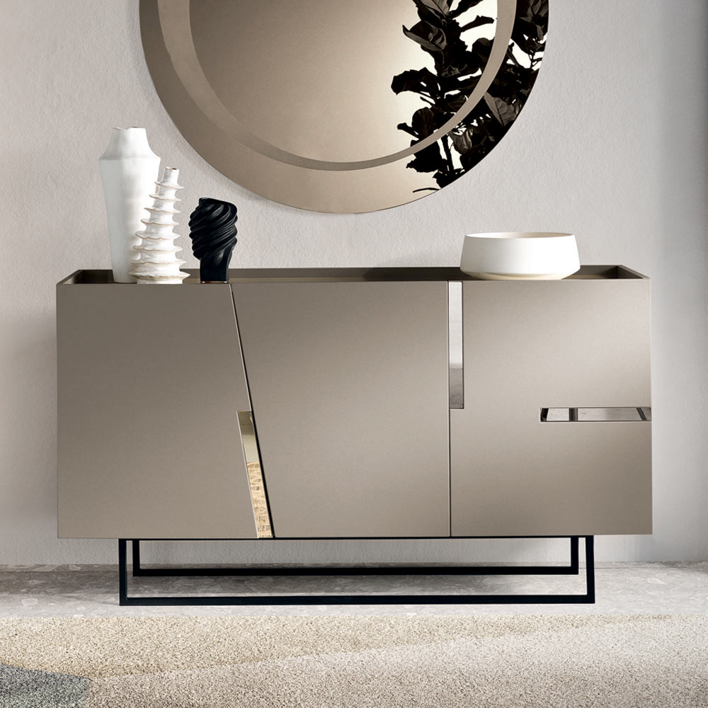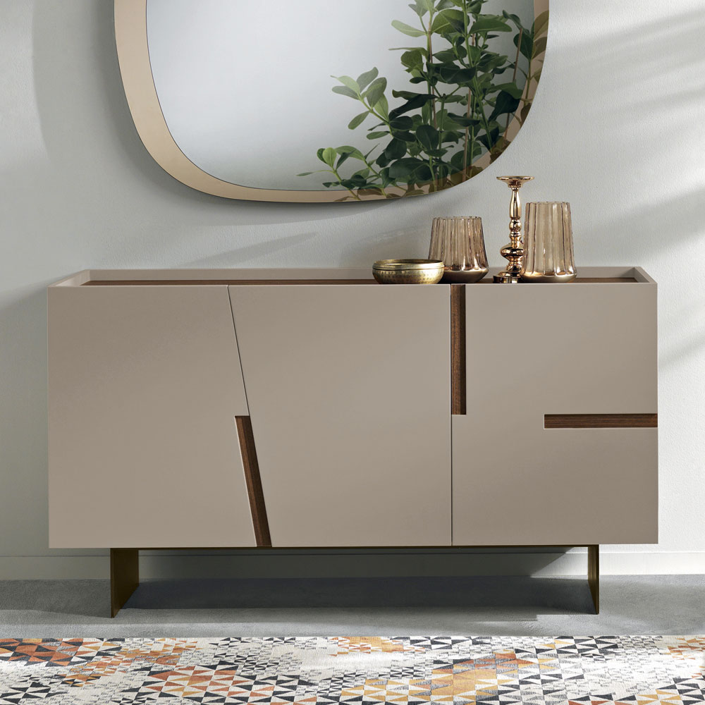 Italiensk designerskænk med lakerede døre og kontrasterende dekorative indsatser