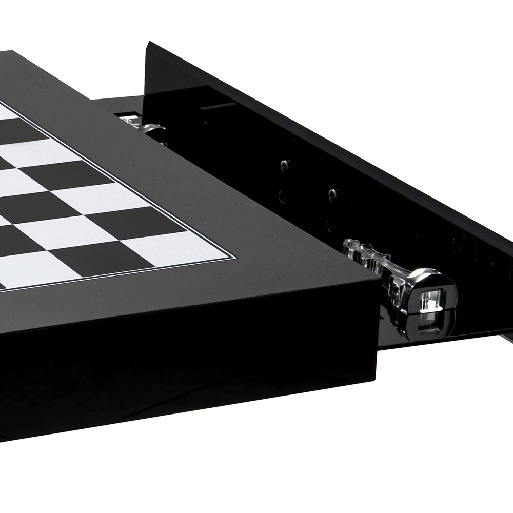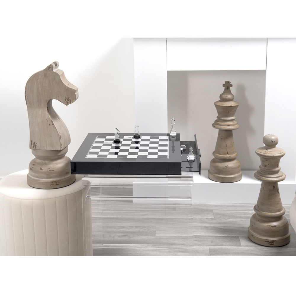 Takket være det væsentlige og raffinerede design og de fantastiske detaljer, der komponerer det, præsenterer skakbrættet / brikkerne sig som et ægte moderne og elegant møbel med eksklusiv luksus.