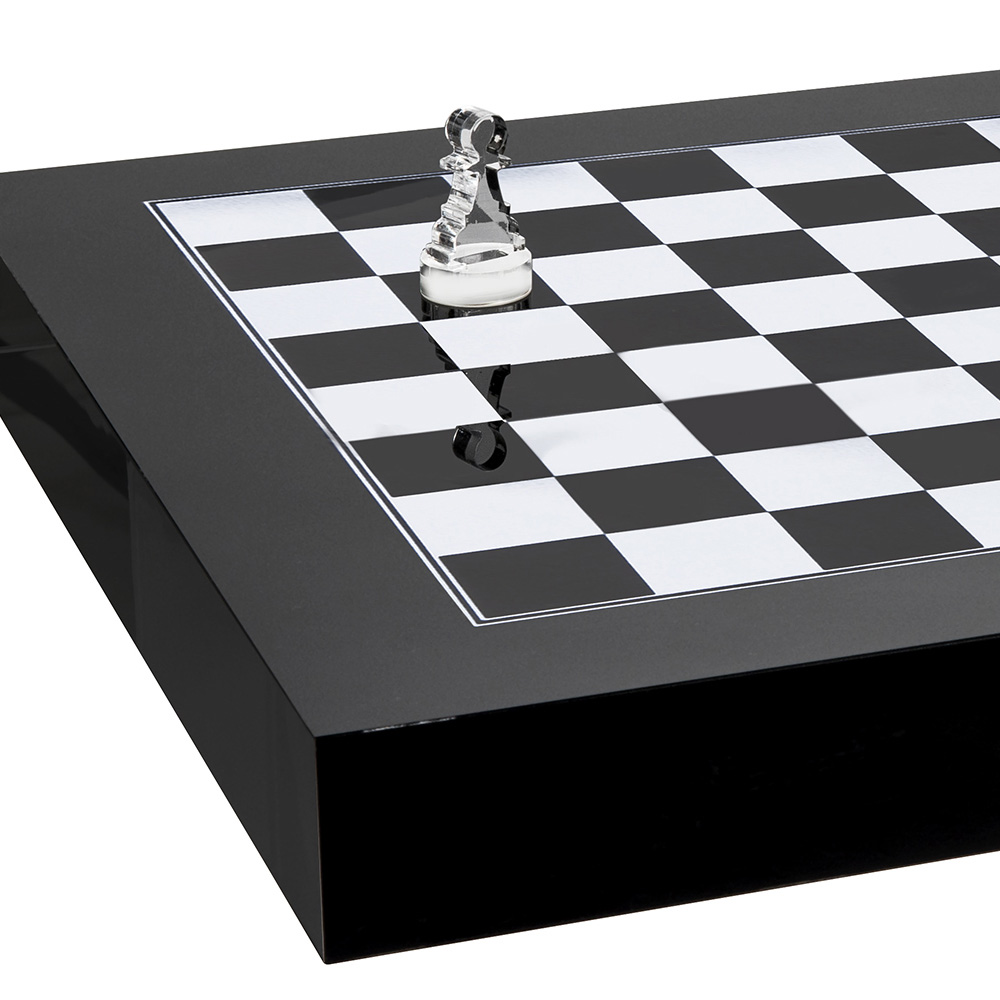 Skakbræt / skakbræt i laserskåret plexiglas med et moderne luksusdesign fremstillet i Italien.