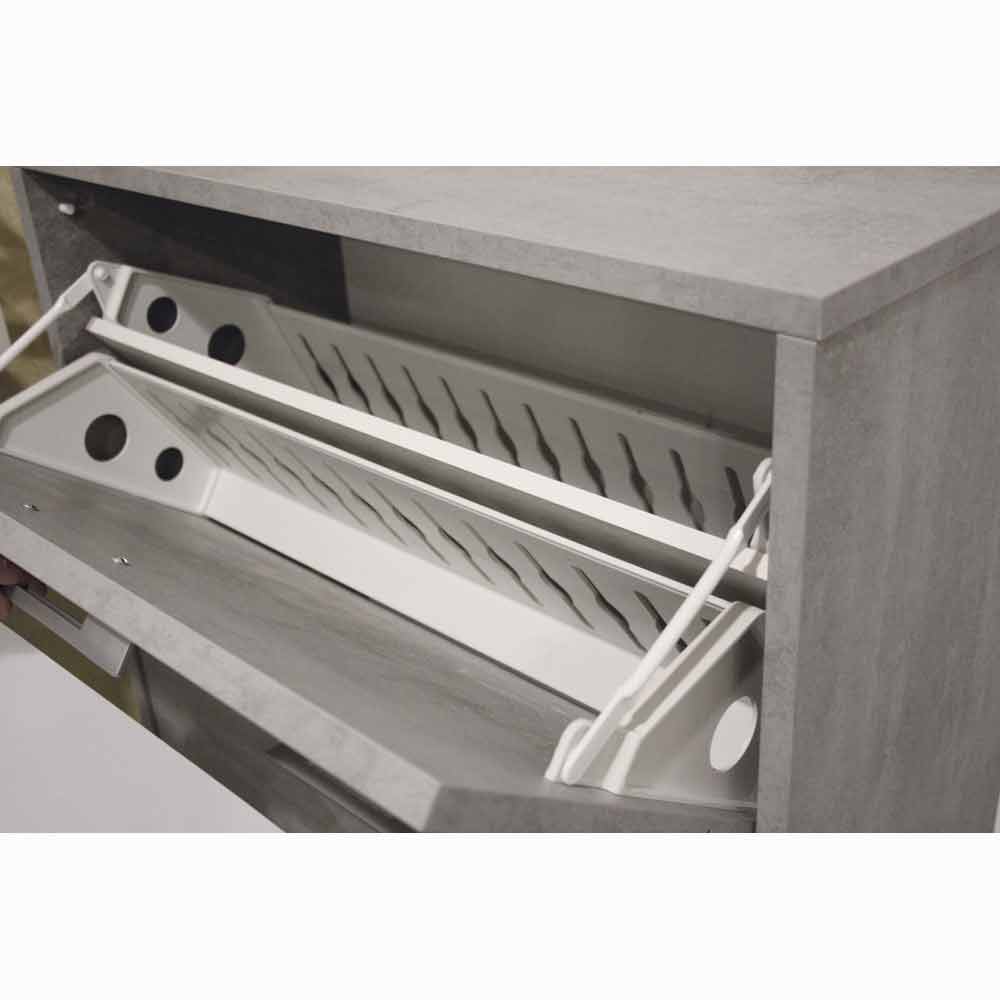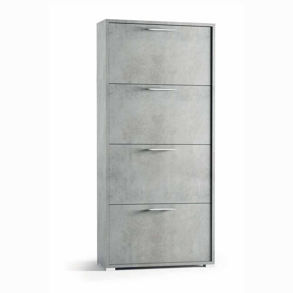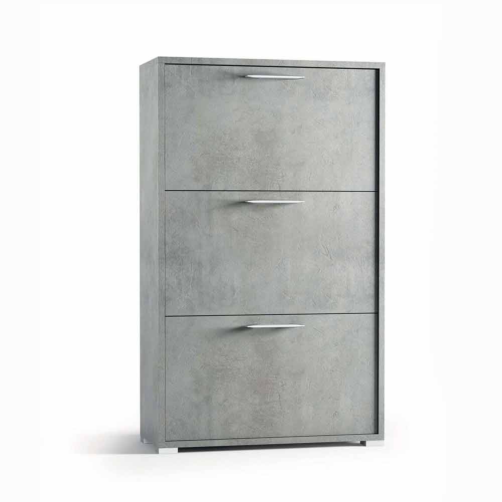 Vipbar opbevaring af sko med 3 skuffer, lavet af Cleaf melaminpanel i cementfinishen. Senis fås i to forskellige størrelser, som let kan gemme 24 eller 18 par sko.