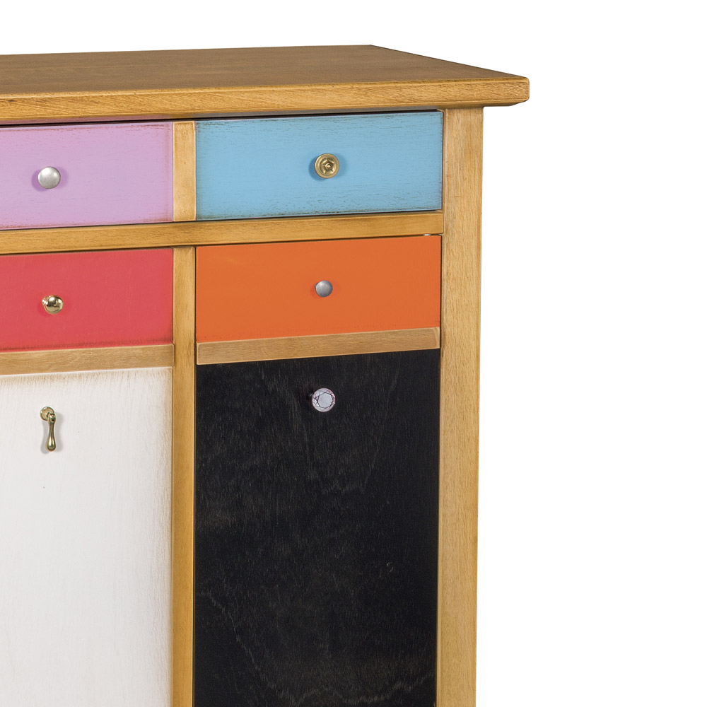 Made in Italy. Glæde og legesyge er de egenskaber, der beskriver dette element med stærke klare farver og de særlige former på grebene. En original nyfortolkning af et møbel med stor