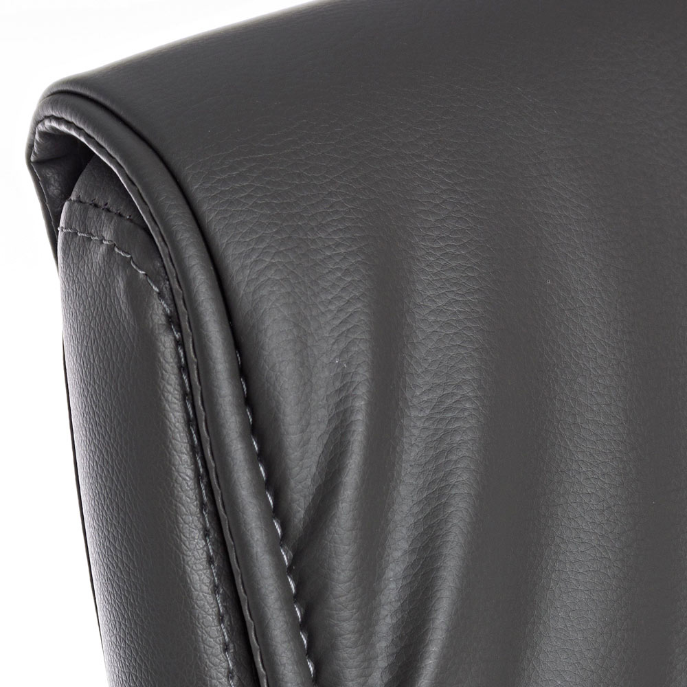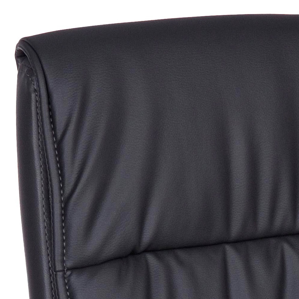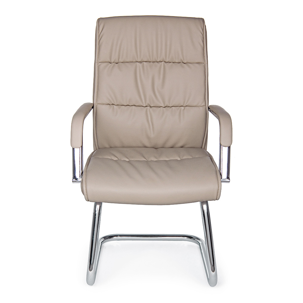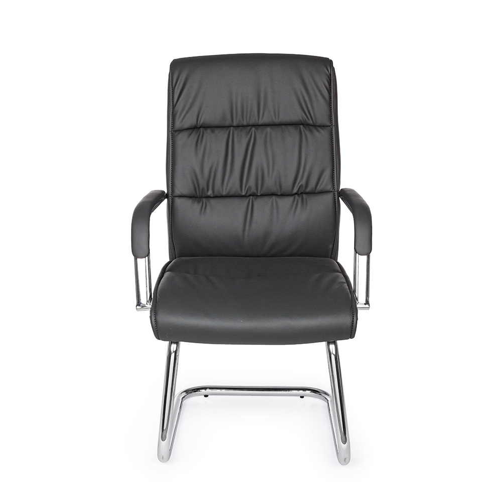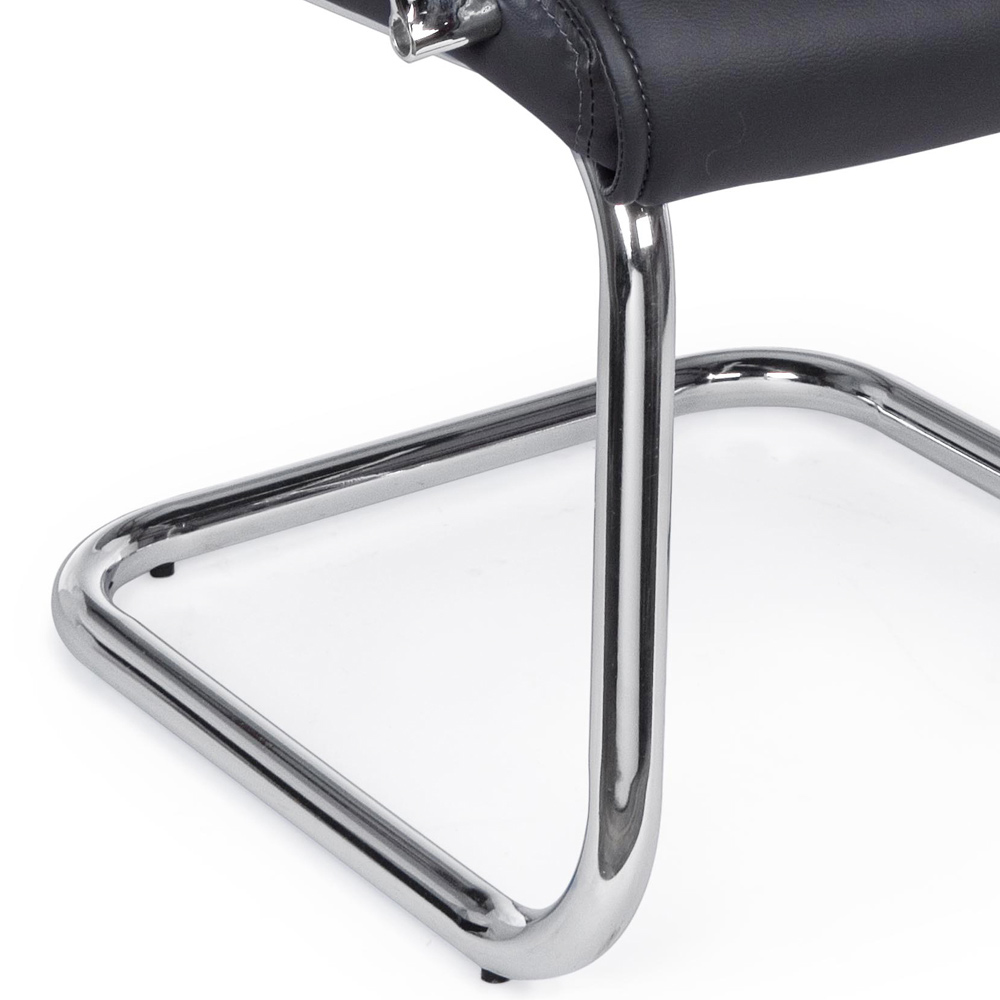 Denne kontorlænestol er lavet med en solid forkromet stålbund og polstret sæde og ryg betrukket med imiteret læder . Armlæn i forkromet stål med betræk af imiteret læder. Design til at samle.