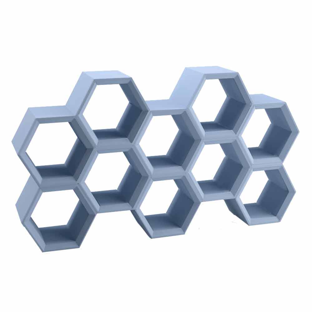 Hexa er en polyethylen reol, hvis form er inspireret af naturen. De forbundne celler, som den er sammensat af, danner et alsidigt møbel, der er velegnet til både husholdningsbrug og ikke-husholdningsbrug. Den geometriske form er elegant og med sine seks sider giver den mulighed for mindst to støttesider til hvert rum.