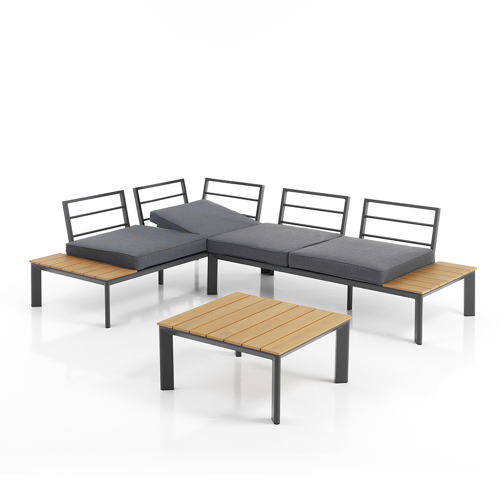 Loungens justerbare ryglæn inviterer dig til at finde dit perfekte komforthjørne, uanset om du læser, solbader eller hygger dig. Det centrale bord er perfekt til at opbevare forfriskende drinks, appetitvækkere eller din yndlingsbog, hvilket gør det til midtpunktet i enhver hyggelig udendørs sammenkomst .