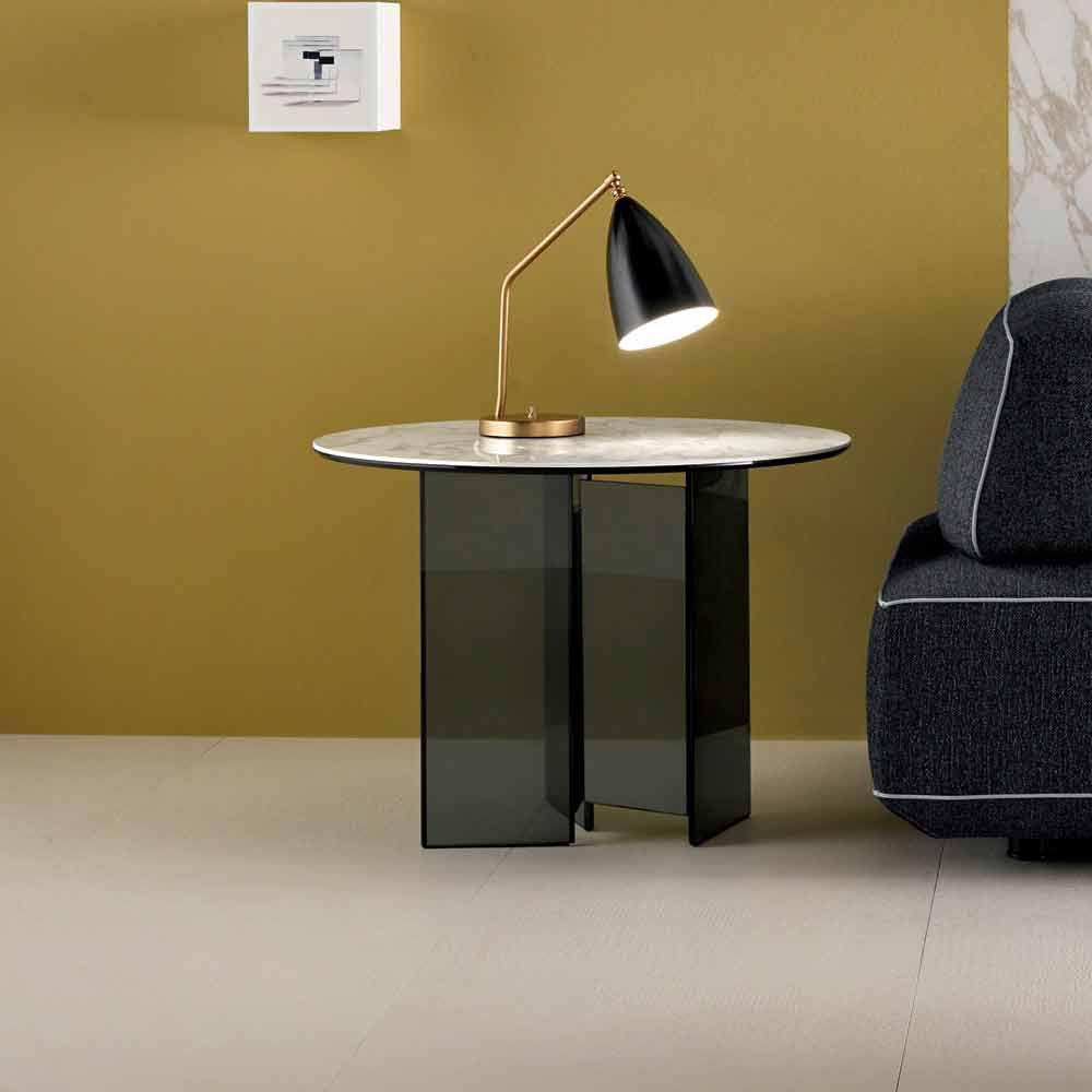 Lavet af røget glas til bunden og en poleret arabesk calacatta keramisk top , det er et møbel, der er håndlavet i Italien med materialer af høj kvalitet, der er ideelle til opholdsområdet.