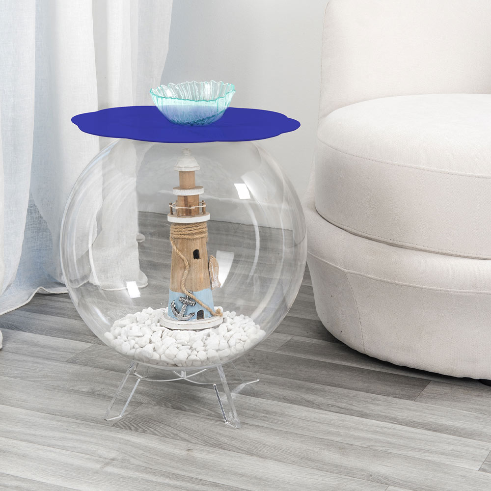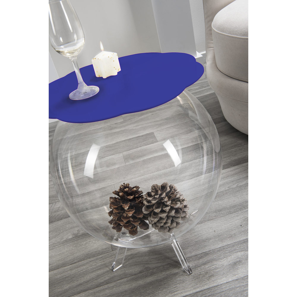 Tabel / plexiglasbeholder fra den sfæriske struktur kan anvendes som vase til blomster, såsom akvarium, som en beholder til legetøj eller som linned. Gennemsigtigheden af BIFFY bord gør det et stykke diskret design, nemt placeres i hjemmet. Hylden er fremstillet af PMMA med 100% plexiglas blå farve ren polymer. Plexiglas er slagfast, elastisk, holdbart og varmeisolerende. Lysstyrken og lysstyrken forblive konstant og uændret over tid. Plexiglass PMMA fra jomfru polymer anvendes ved ikke-toksisk, hypoallergen, lugtfri og antibakteriel. Genanvendeligt 100%. Udtænkt, designet og fremstillet i Italien, med italienske materialer.