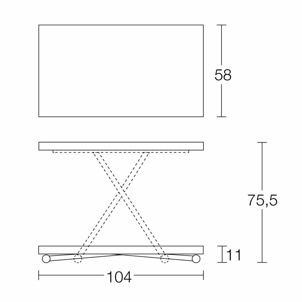 sofabord til et spise- eller køkkenbord via en gasmekanisme, der kan justeres i højden til millimeteren fra 11 cm til 75,5 cm.