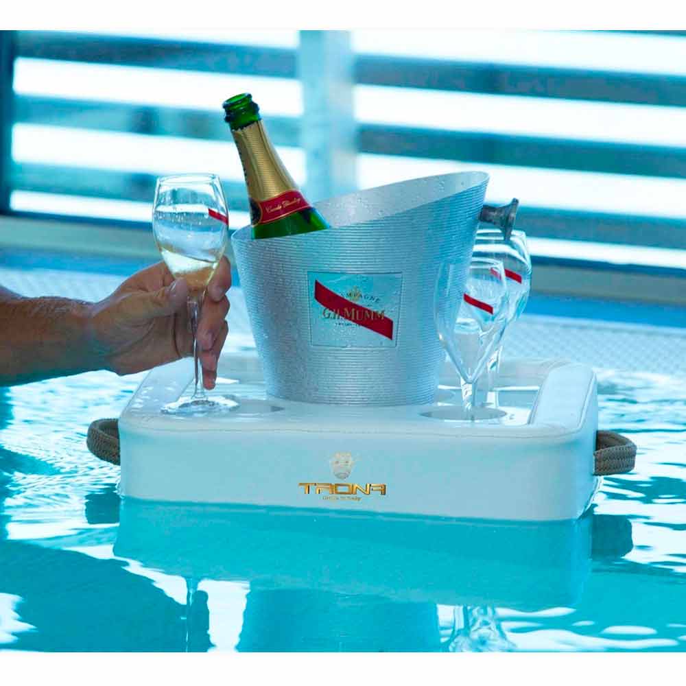 Den særlige plade perforeret plexiglas, Trona argumenterer flaske, isspand og briller sikkert, uden risiko for kæntring. Tronaen har en centrale kammer kombineret portaghiaccio / flaskeholder og 4 huller til at bringe vin briller eller cocktail.
