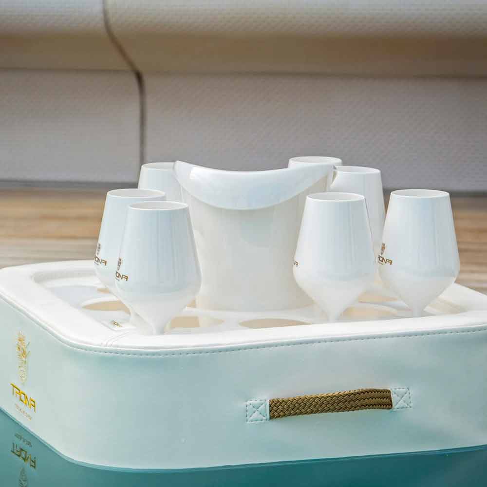 Tronaen er komplet med en ice bucket kurv og et sæt af 8 glas polycarbonat.