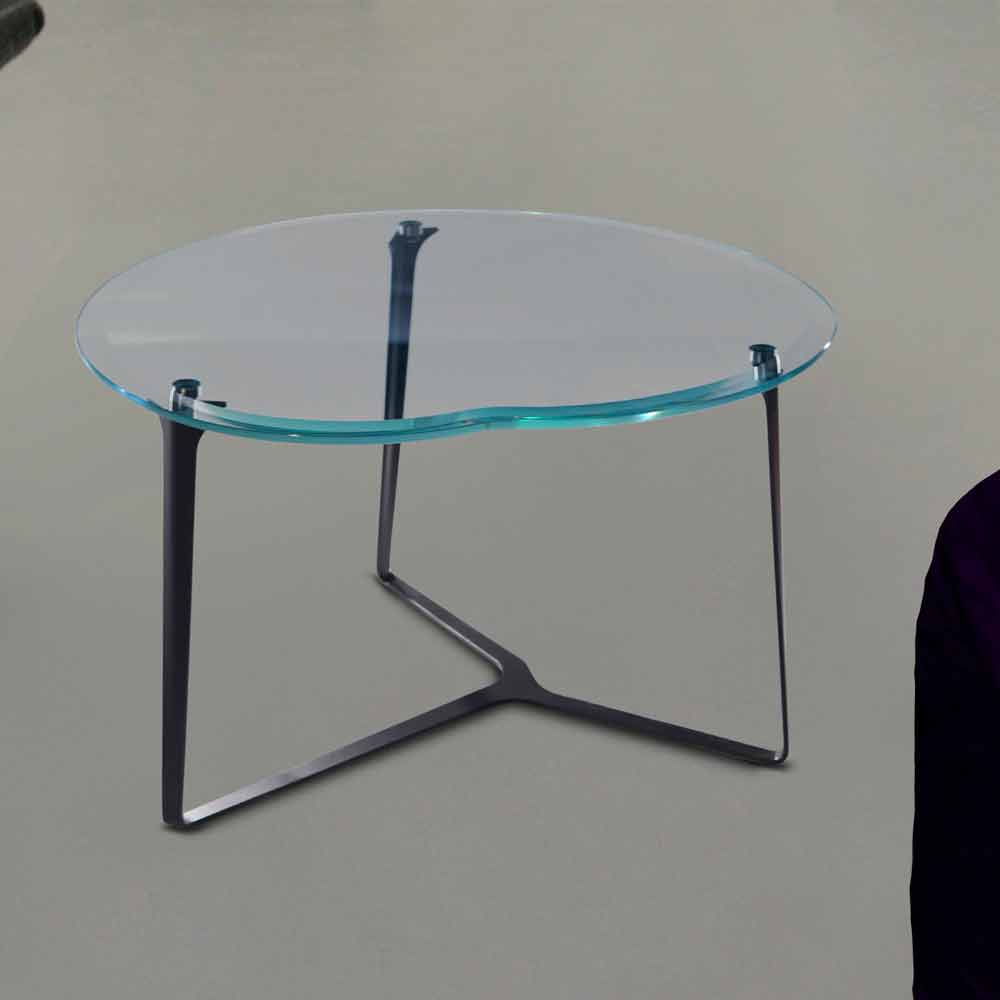 Dens æstetik understreges af valget mellem at bruge kreative former til både toppen og basen, hvilket giver produktet en original og fuldstændig revolutionerende personlighed. De tynde og sarte linjer i stålkonstruktionen følger uregelmæssige linjer, så uforudsigelige som vandstrømme, der repræsenterer en solid understøtning til bordet. Toppen er fint placeret på dem, meget ren og ultraklar, hvis glans minder om den af en ægte dyrebar diamant, hvorpå lyset glider, hvilket skaber vidunderlige legespil af kontraster. Fra mødet mellem glasets tidløse elegance og stålets indre modernitet fødes en møbleløsning med en raffineret sjæl, der er ideel til at udfylde og pynte dine rum med et strejf af kreativ stil .