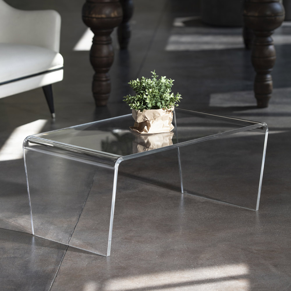 Rektangulært sofabord i håndfoldet transparent akrylkrystal fremstillet i Italien.