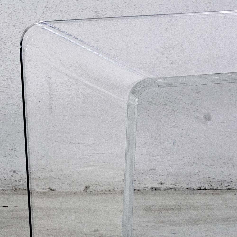 Dette sofabord har en struktur, der udelukkende er lavet af transparent akrylkrystal, laserskåret og foldet i hånden , for et design med essentielle og minimale linjer.