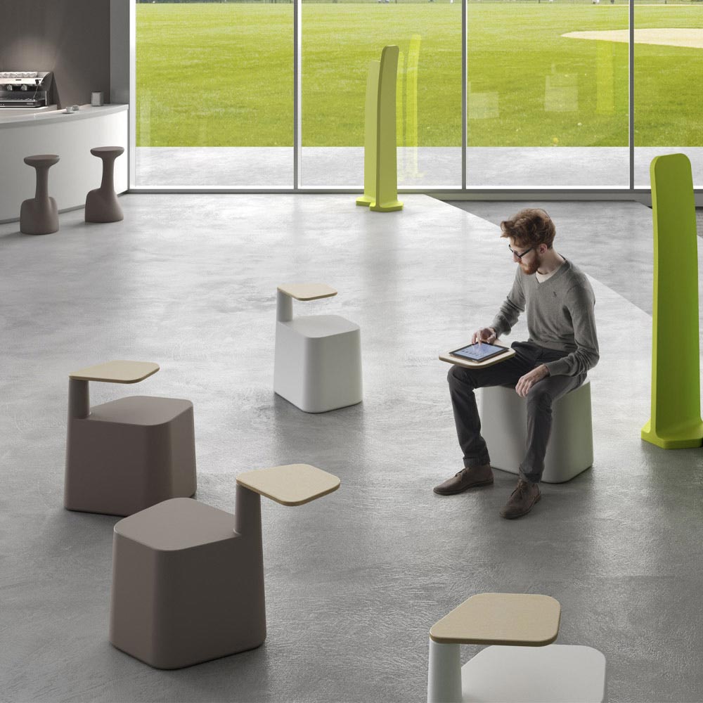 funktionalitet og praktisk at tilbyde en intelligent bordplade, der er ideel til korte stop i travle offentlige miljøer såsom barer, afslapningsområder og rum såsom studierum, mødeområder, biblioteker. Dens æstetik er præget af