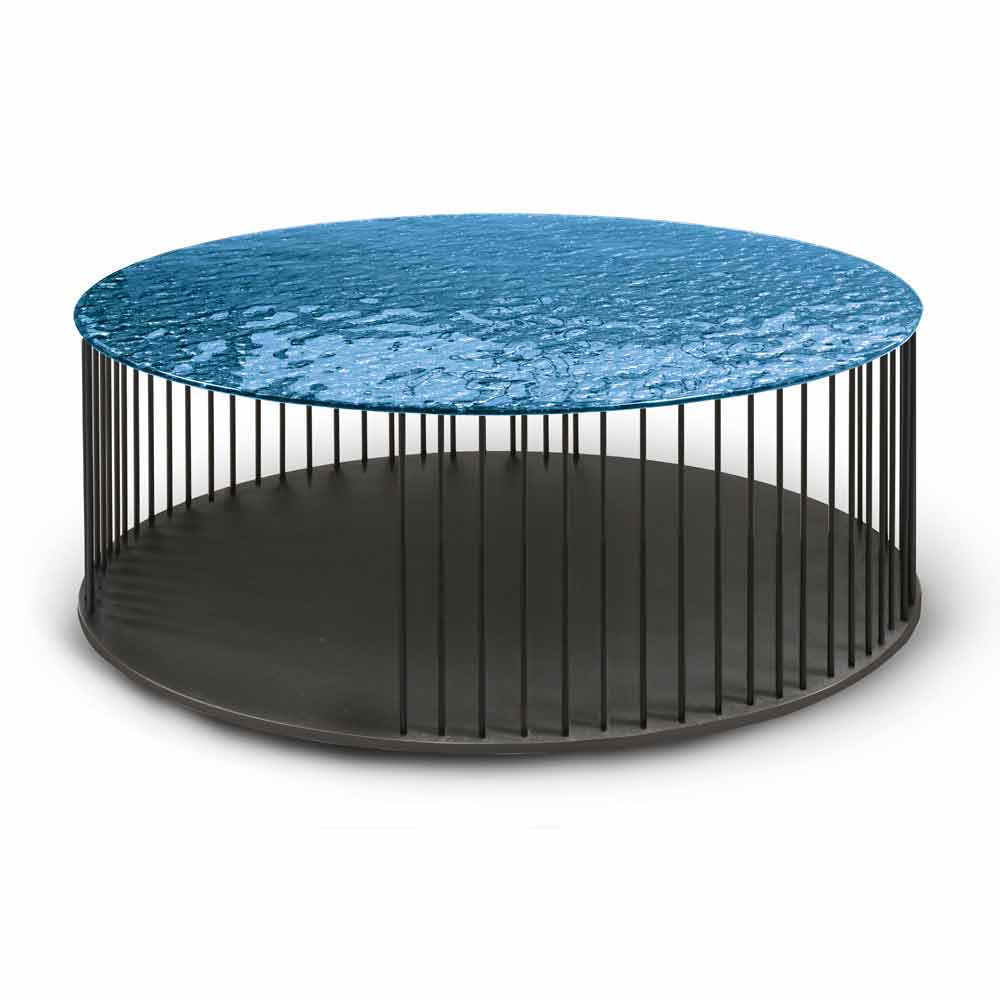 Sofabord i smedet krystal og sort metal Fremstillet i Italien.