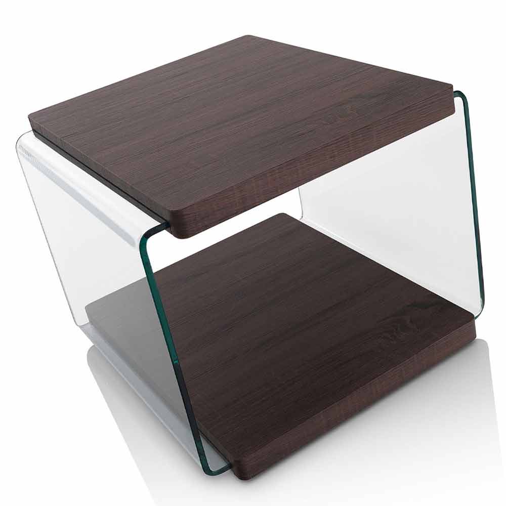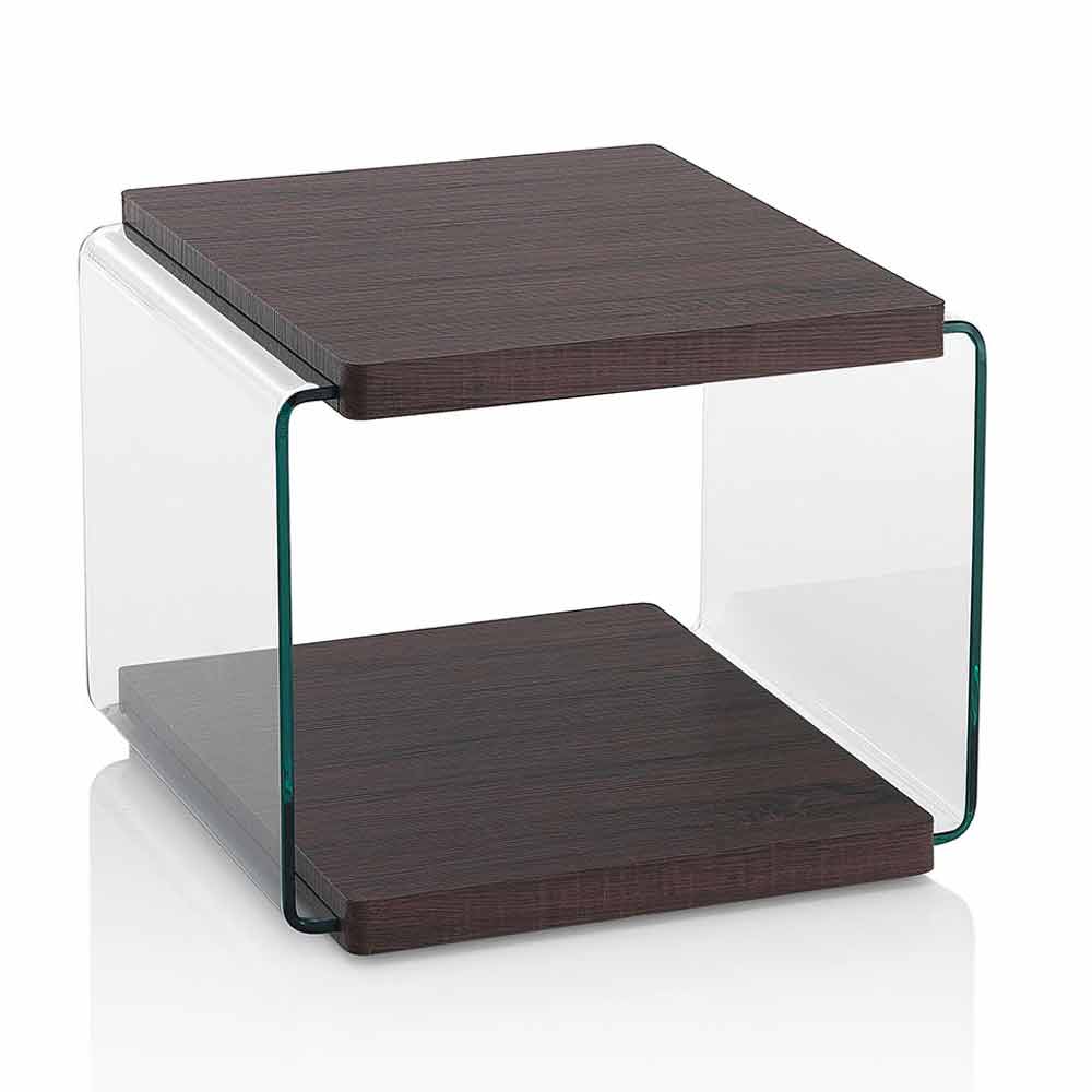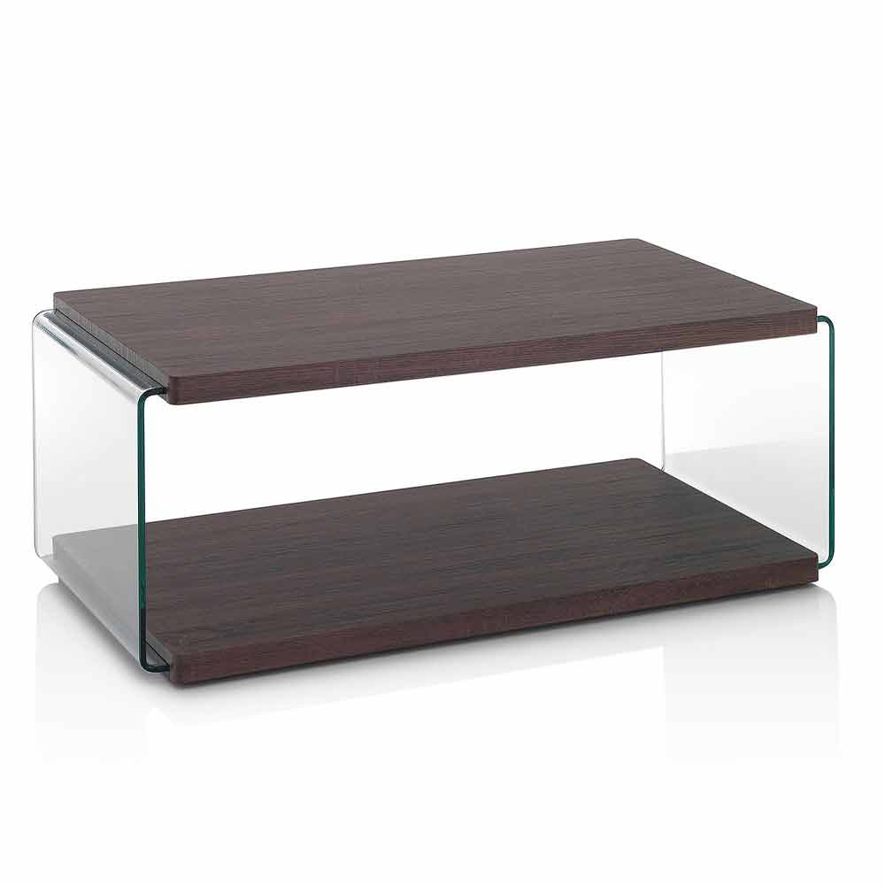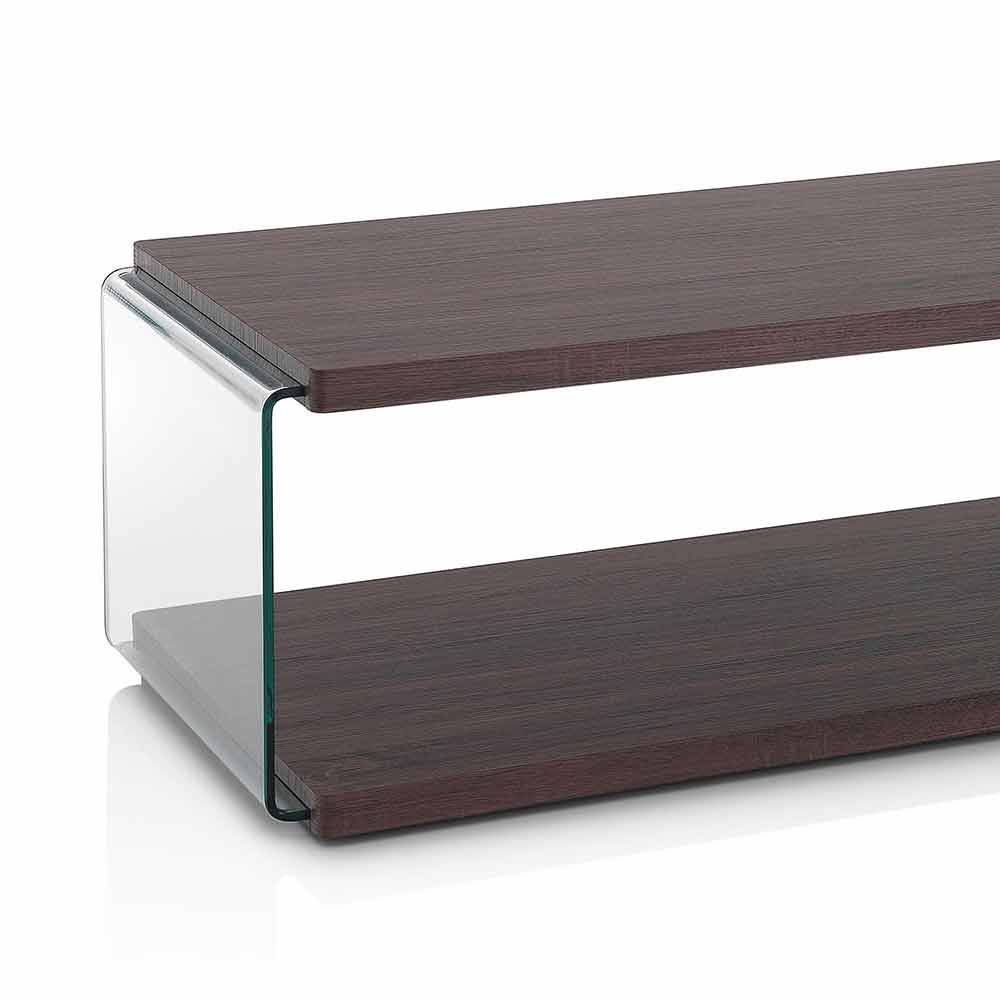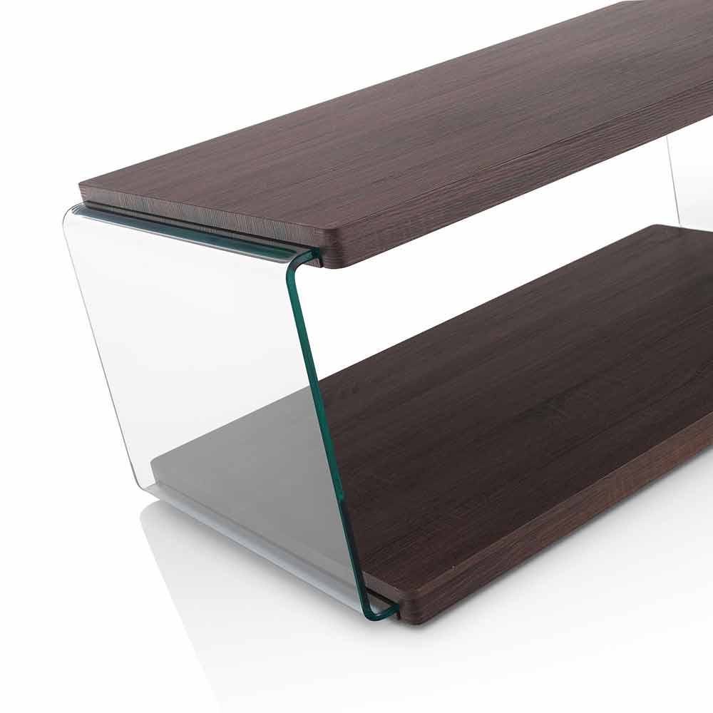 valnøddefarvet mdf med sideindlæg i transparent hærdet glas. Netop de anvendte materialer gør det muligt for bordet at tilpasse sig enhver møbelstil, fra det mest moderne til det mest klassiske, og kombinerer det