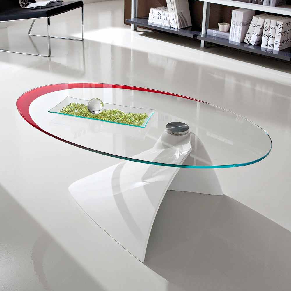 ekstremt fængslende præg med sig. Den tidløse elegance af glasset kombineres med det raffinerede strejf af den lakerede marmorbase i en blank finish for at give liv til et enestående sofabord, der er blevet endnu mere unikt af det vidunderlige silketryk på toppen, der følger efter. dens linjer og former. Slutresultatet bliver et