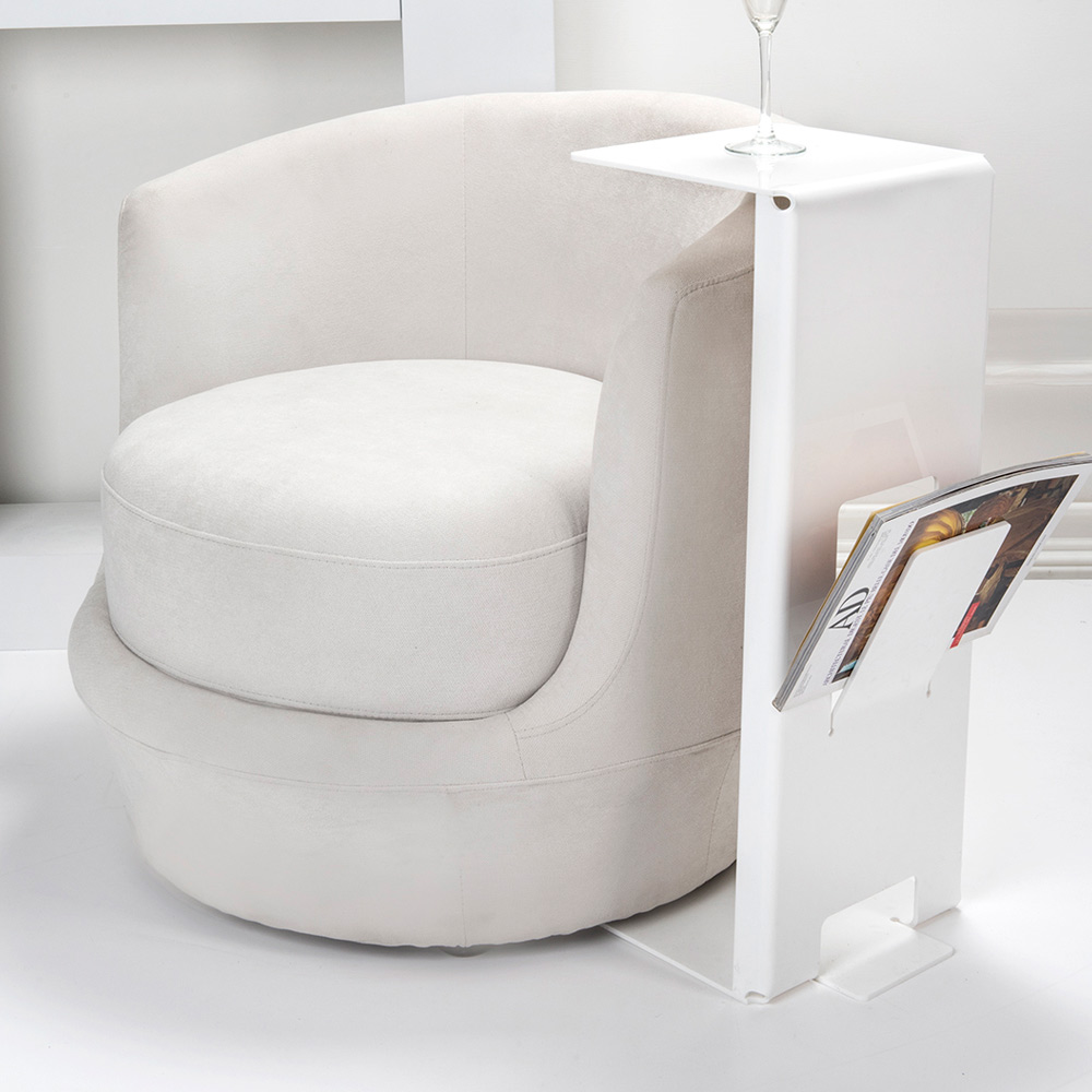 Ud over det sofistikerede udseende tilbyder dette sofabord ekstra bekvemmelighed takket være dets integrerede magasinstativ , perfekt til at organisere dit yndlings læsestof eller blot vise kunstbøger og magasiner, der afspejler din personlige stil.