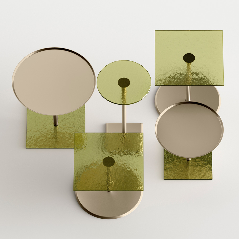 originaliteten og elegancen af formerne på toppen og bunden, som fremhæver detaljerne i den centrale metalstamme, omhyggeligt vendt i tykkelse og afsluttet på overfladen. Sofabordet, alene eller i en gruppe, tilpasser sig til at indrette ethvert rum i hjemmet og trække sig sammen med et