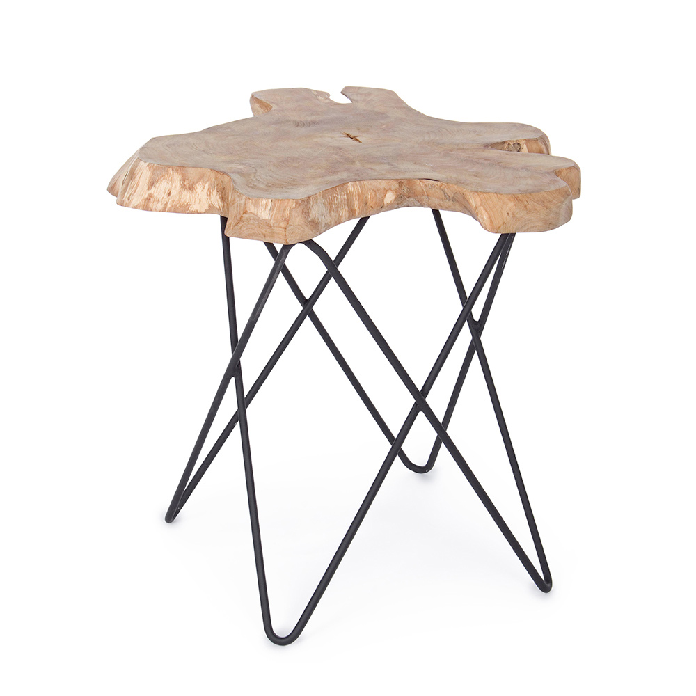 Dette stuesofabord er lavet med et gulv lavet af teakrødder med en naturlig finish Og ben i epoxy pulverlakeret stål.