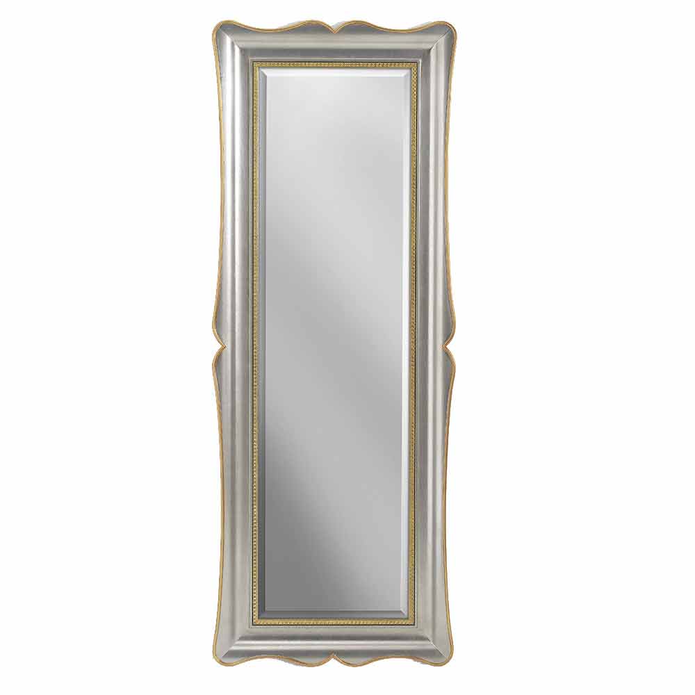 Dette spejl er et eksemplar af tidløs elegance, der kombinerer klassiske finish med raffinerede gyldne detaljer, et perfekt valg til at bringe et strejf af luksus til ethvert boligrum . Dens slanke, aflange design er indrammet af en ramme med blidt bølgede kanter, der tilføjer en følelse af bevægelse og visuel ynde til ensemblet.