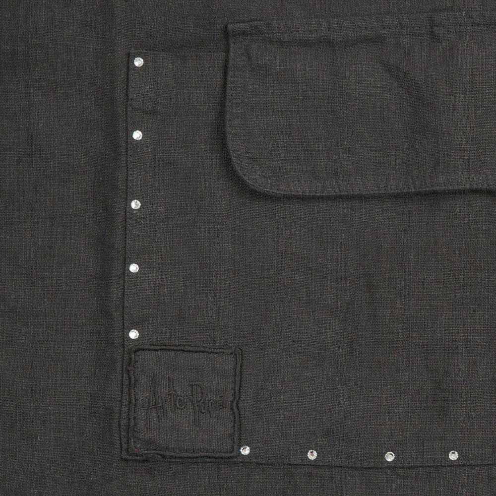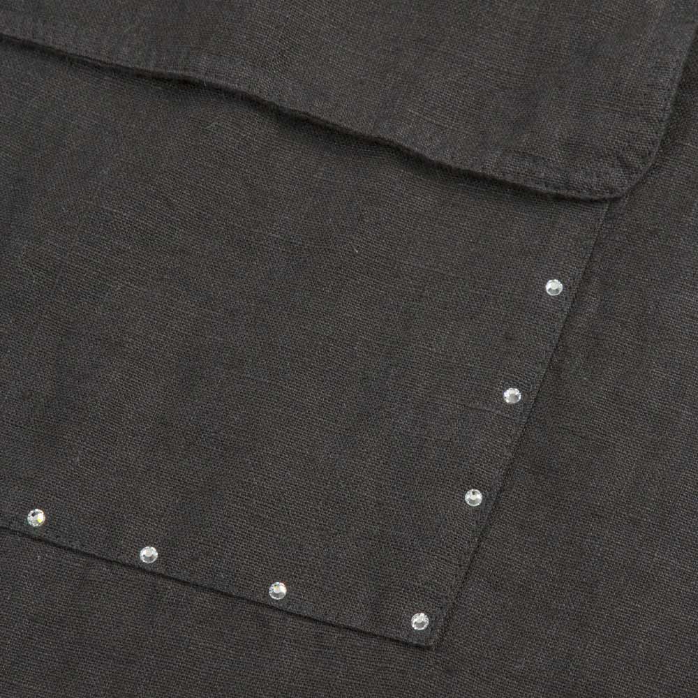 Sort linned køkkenforklæde med lomme og krystaller, lav model fremstillet i Italien.