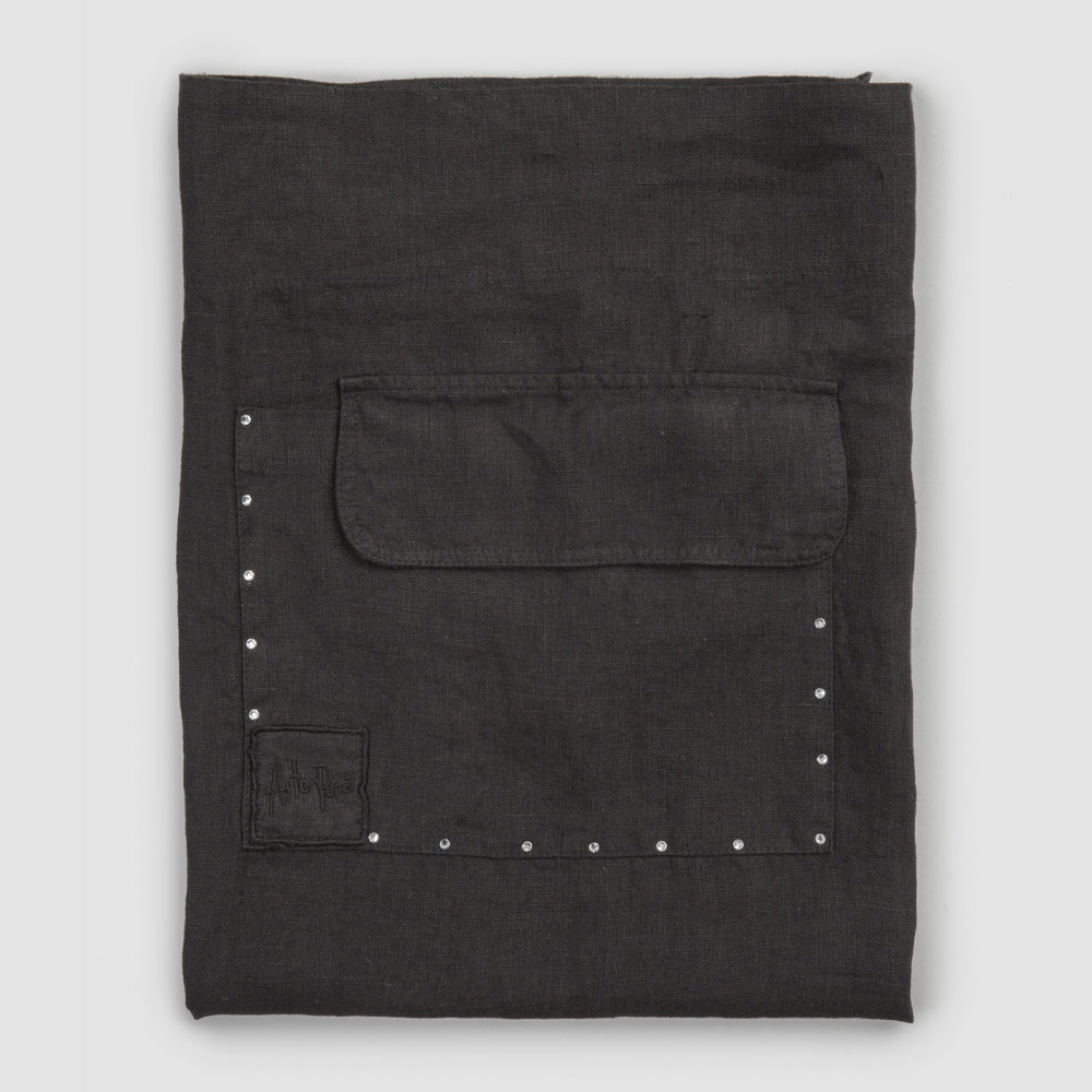 Traditionens værdi slutter sig til den moderne livsstil med dette sorte linned køkkenforklæde med lomme og pyntet med krystaller.