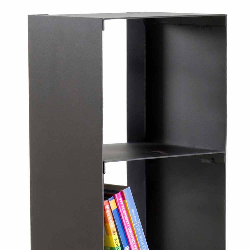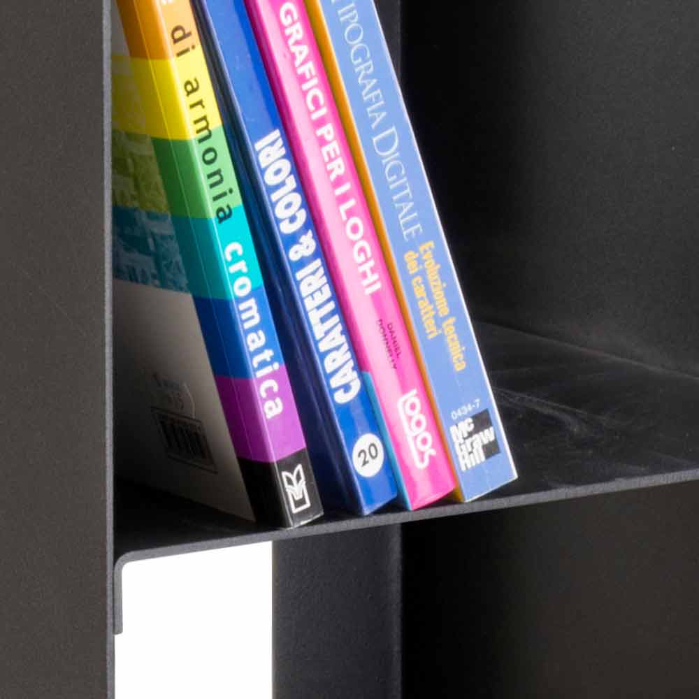 Indendørs bjælkeholder i sort stål med hylder, moderne design fremstillet i Italien.
