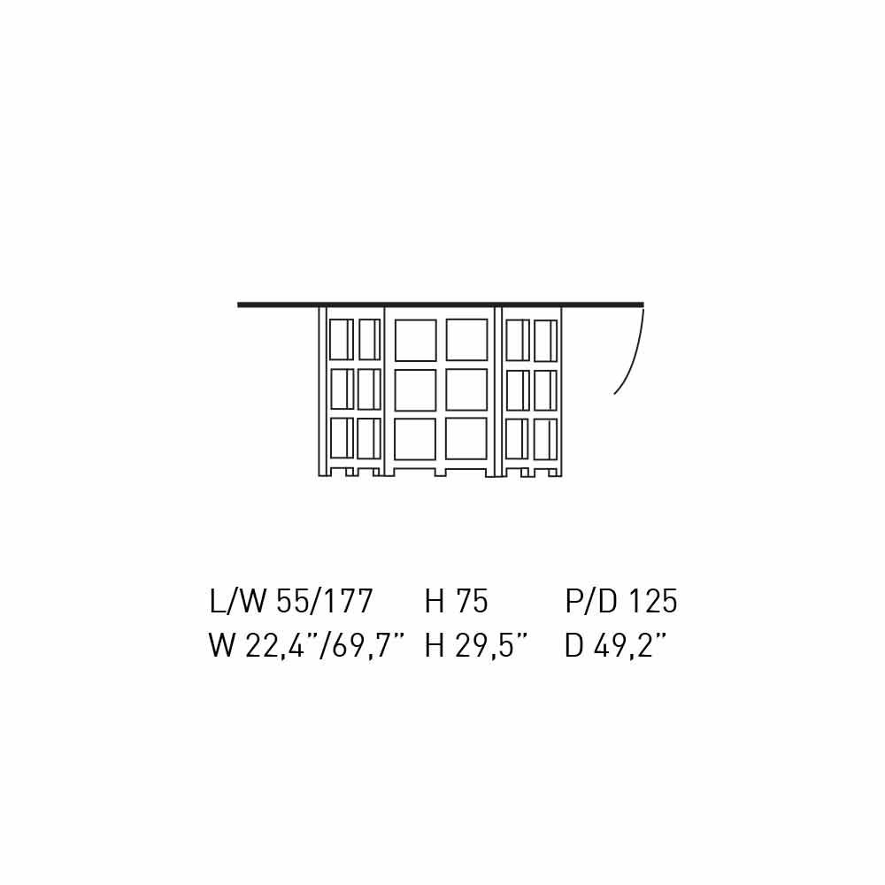 Spisebord helt fremstillet i Italien med top og struktur i sortmalet asketræ. Et møbel med en original stil omend i sin ekstreme enkelhed. Dens æstetik er karakteriseret og gjort unik ved den særlige base, der er skabt ud fra geometriske former og funktioner, der giver bordet en følelse af forfining og innovation for et eksklusivt resultat med en stærk visuel indflydelse . Dens ejendommelighed repræsenteres af den tilbagelæggede top på begge sider, som giver dig mulighed for at få et bord med mindre dimensioner, ideelt til dem, der ikke har store lokaler til rådighed, men under alle omstændigheder kræver en tilstrækkelig overflade til at rumme venner og slægtninge til vidunderlige frokoster og middage med venner.