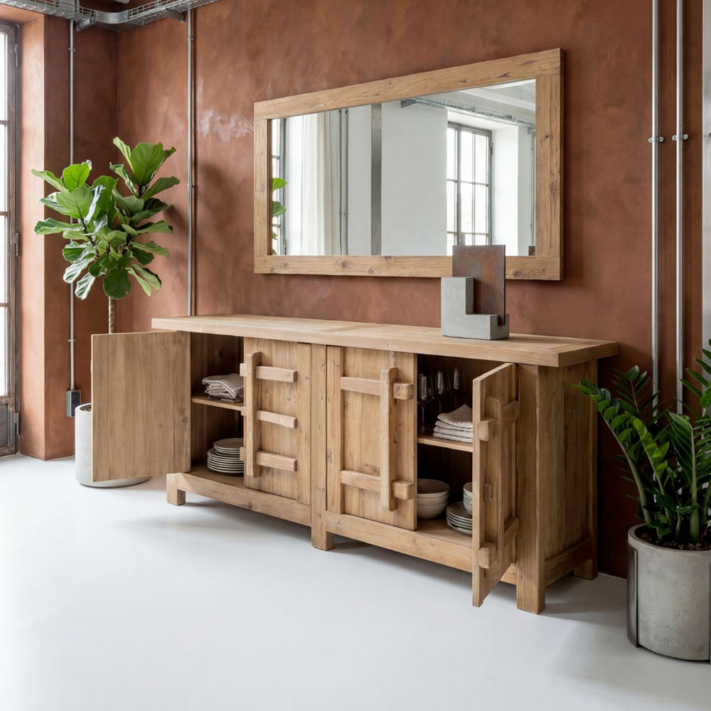Det rene design og de afbalancerede proportioner gør dette spejl perfekt som både et funktionelt og dekorativt element, der nemt tilpasser sig rustikke, landlige eller moderne naturlige stilsammenhænge.
