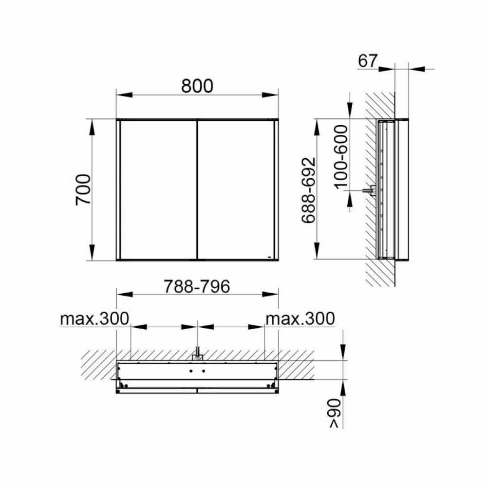 Denne semi-forsænkede version har et fremspring på kun 6,7 cm fra væggen, der giver et