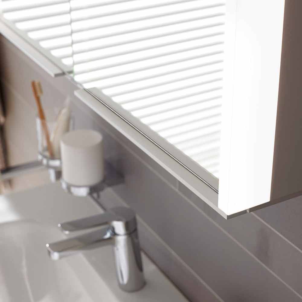 LED-belysning, der let kan justeres og dæmpes gennem den elektroniske sensorafbryder, hvilket skaber unikke atmosfærer i rummet. Når de er åbne, roterer de 2 døre rundt om lysbåndene, hvilket giver optimal belysning, både når den er lukket og når den er åben.