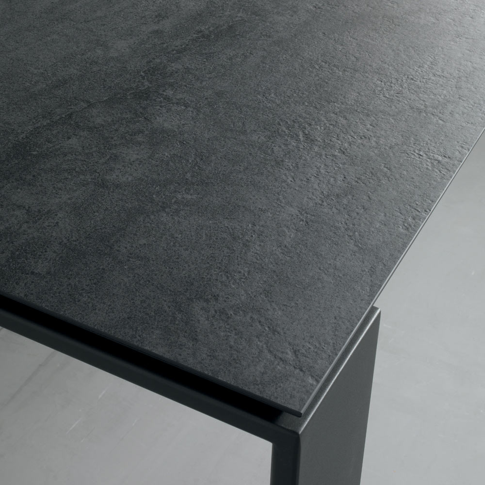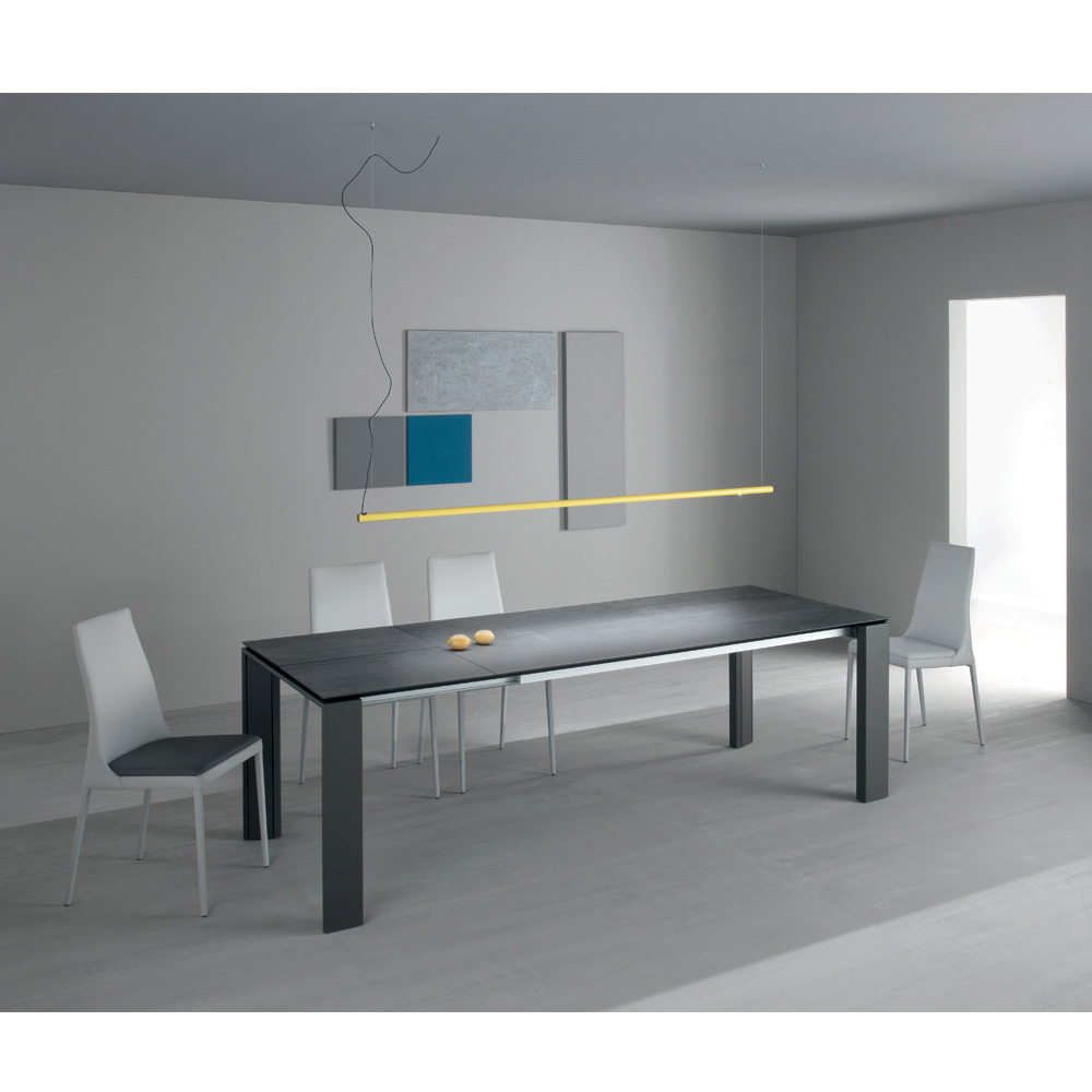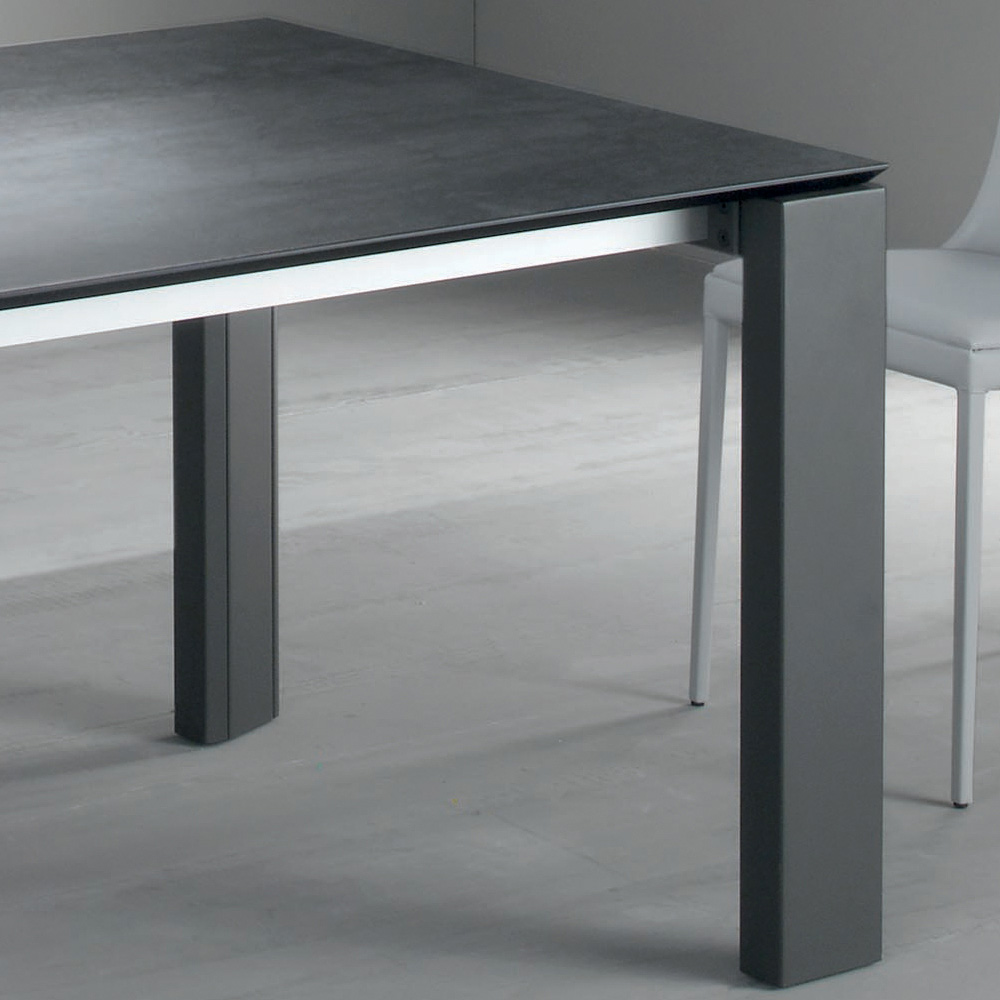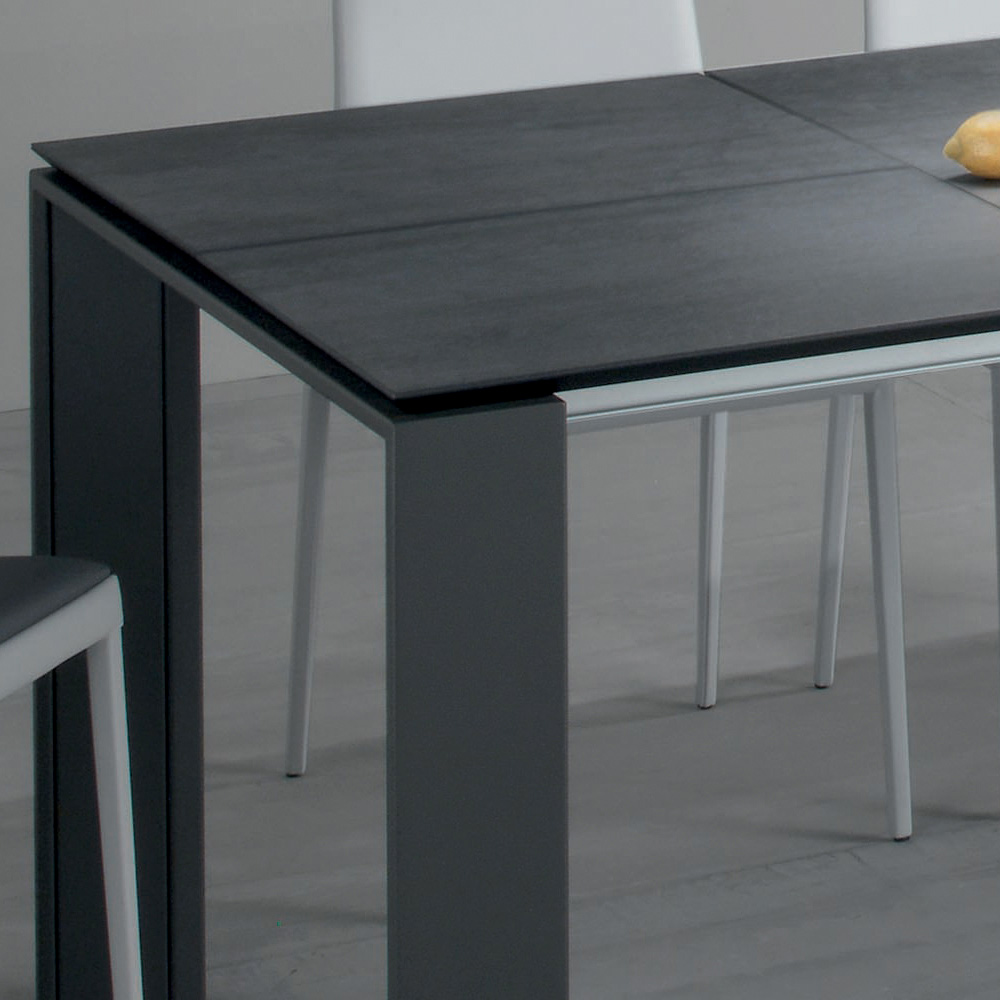 Udtrækkeligt spisebord i keramik og metal understel, forskellige størrelser og finish fremstillet i Italien.