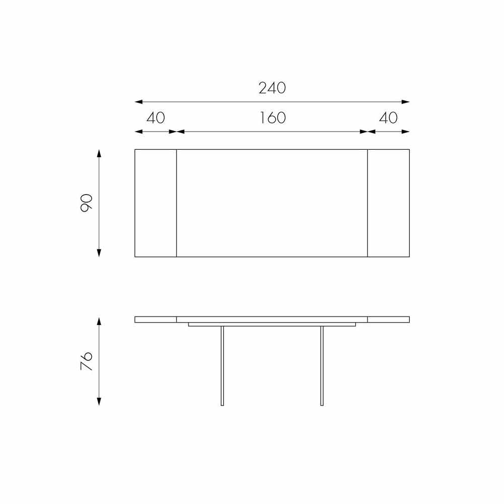 L160/240x D 90x H 76cm; nr. 2 forlængelser på 40 cm hver